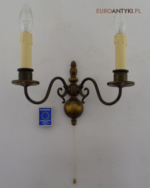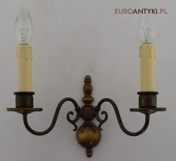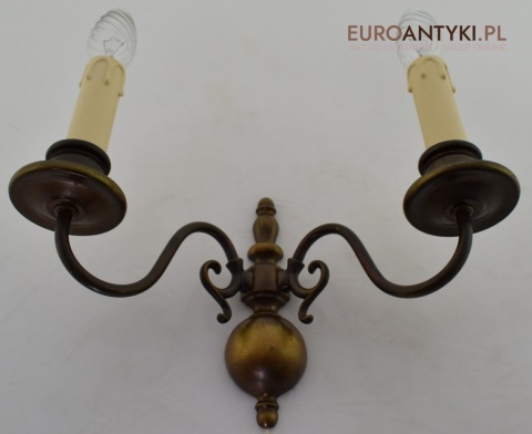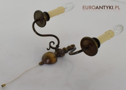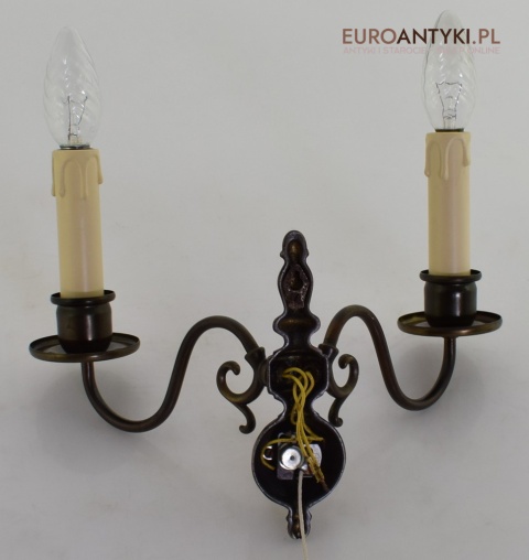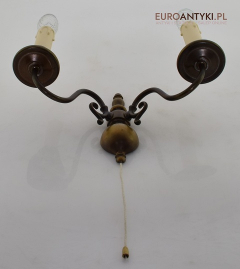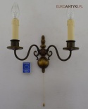 Vintage - dwuramienny kinkiet mosiężny z dawnych lat. Oświetlenie retro.