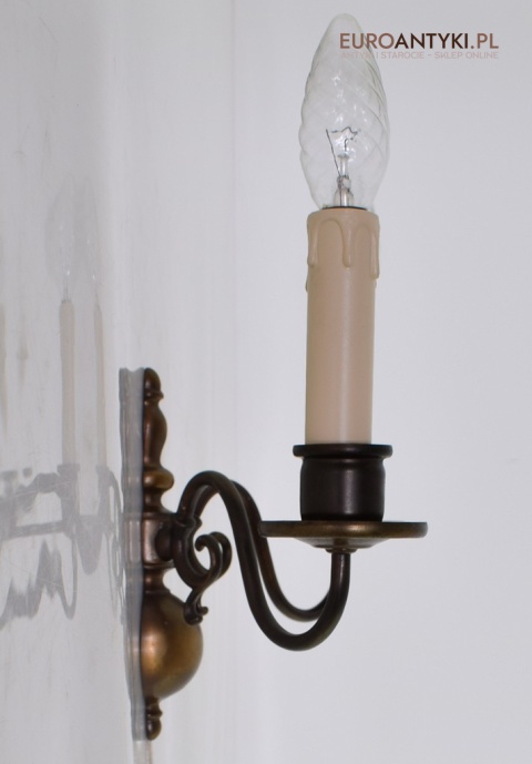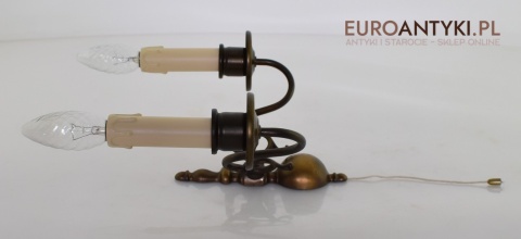 Kinkiet posiada sprawny mechanizm na sznureczku - włączający i wyłączający dopływ prądu do żarówek. Gilzy wymieniliśmy na nowe w stylu vintage / retro.