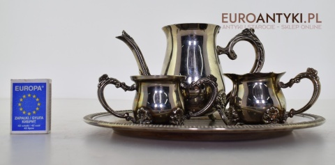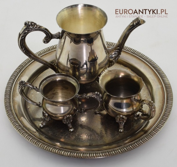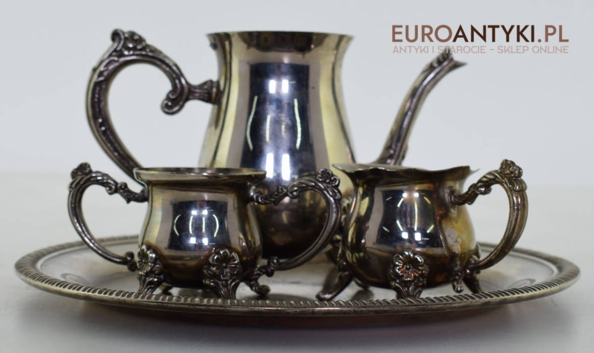 Starodawny platerowany komplet kawowy lub do herbaty.
