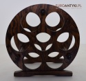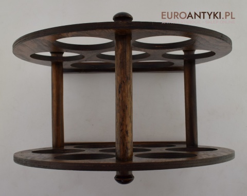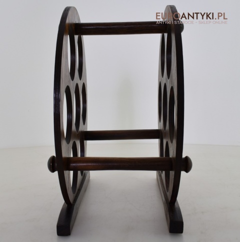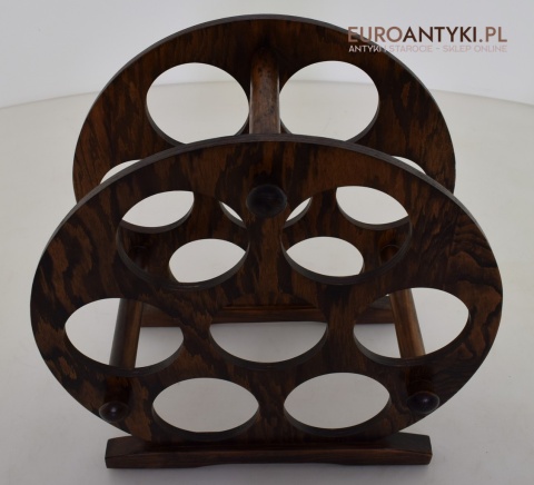 Stojak został wykonany z drewna. Precyzyjne wykonanie, stabilna konstrukcja i dbałość o detale świadczą o jakości tego wyrobu sprzed dekad.
