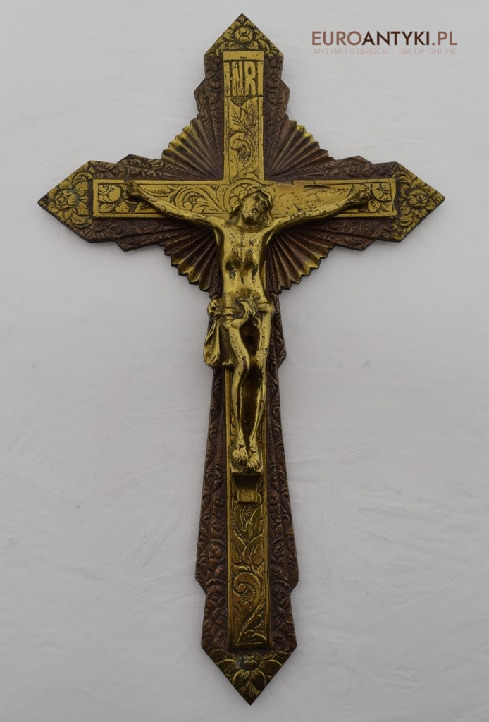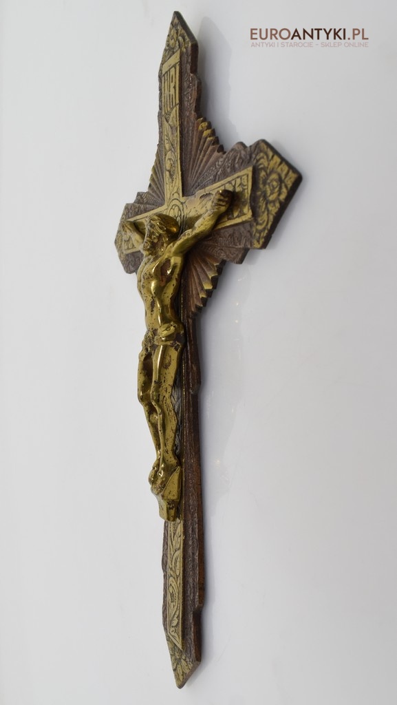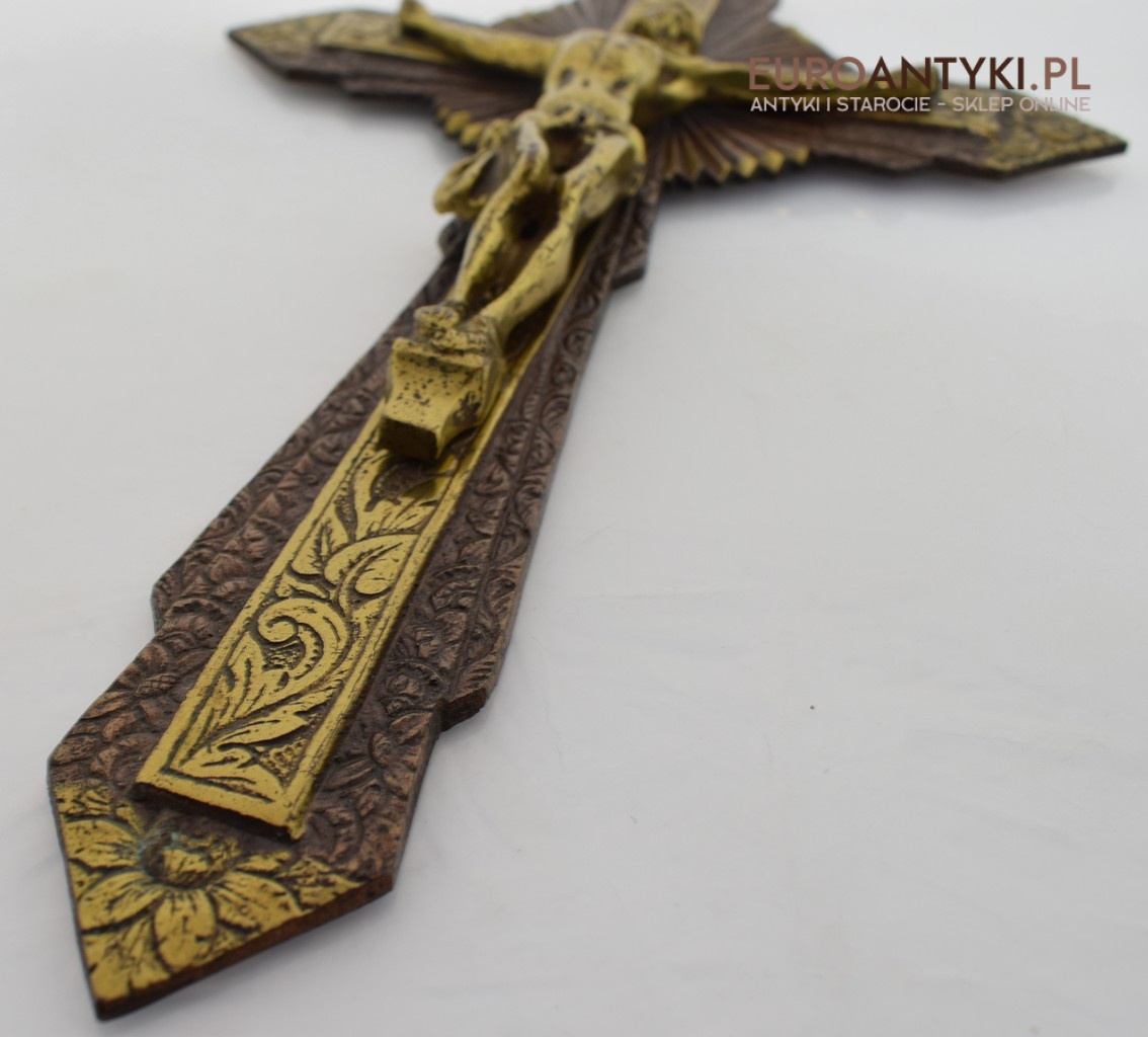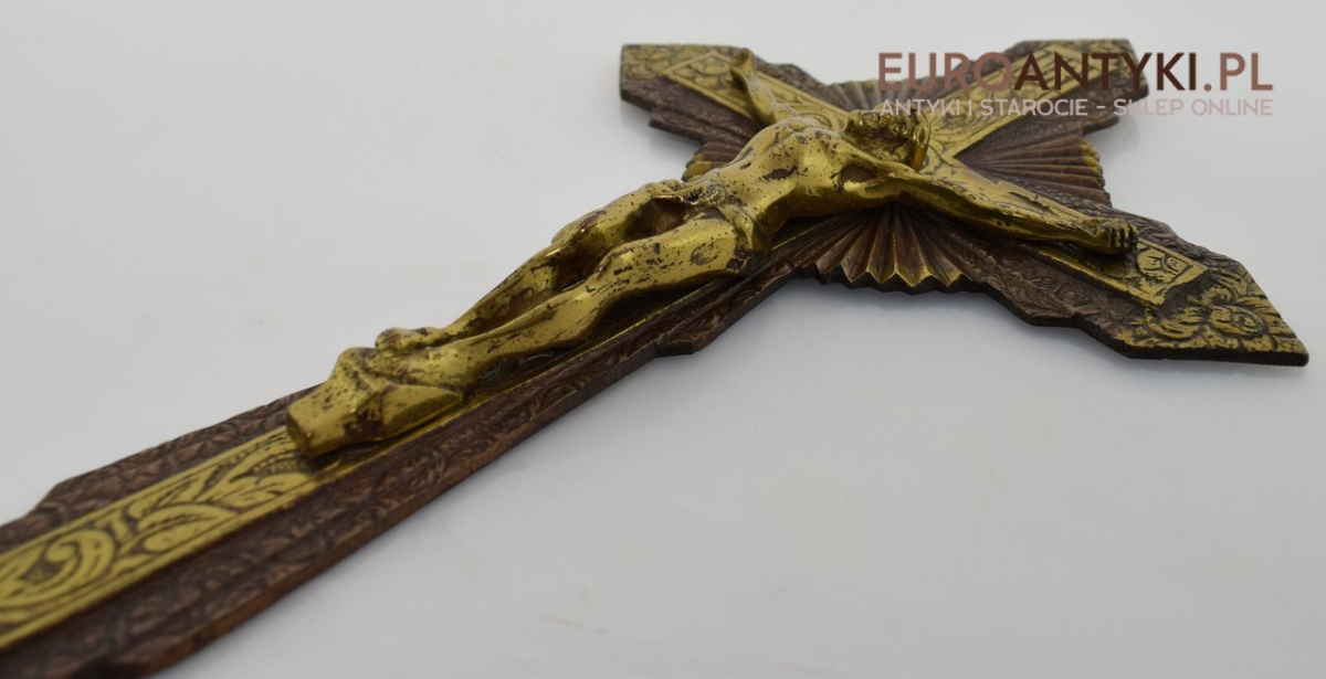 Stary rustykalny krzyż z Jezusem na ścianę.