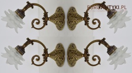 Całość bez uszkodzeń. Przedmiot kompletny, profesjonalnie wyczyszczony. Elektryka sprawna - sprawdzana przez naszego elektryka. Standardowe gniazda elektryczne typu E27. Obecnie można kupić żarówki LED o różnym natężeniu, różnej barwie światła i różnym wyglądzie. Nawet mała żarówka może być potężnej mocy i nie będzie pobierać wielu watt, przez co nie przegrzewa i nie uszkodzi kabli elektrycznych. Wszystkie lampy wysyłamy bez żarówek. Żarówki tego typu są łatwo dostępne w sklepach elektrycznych lub w internecie.