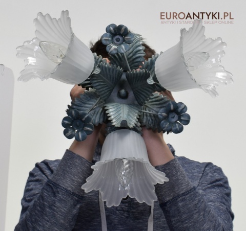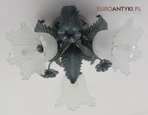 DUŻY! XL! Klasyczny rustykalny plafon z kloszami florystycznymi.