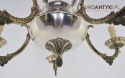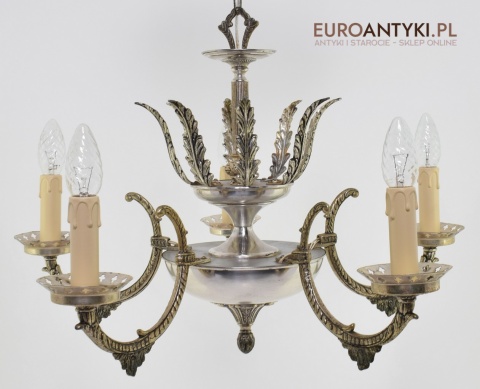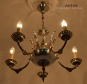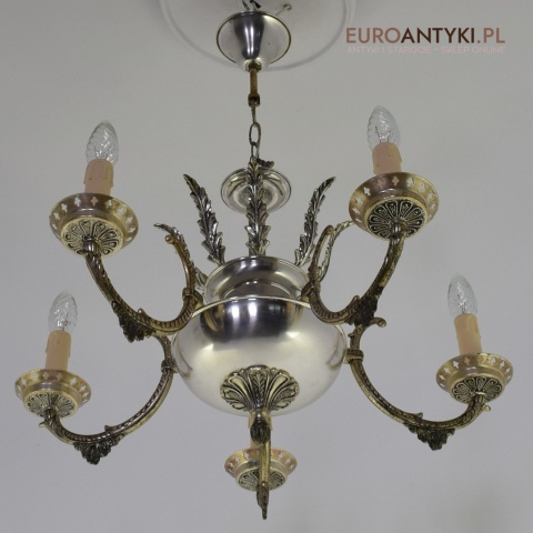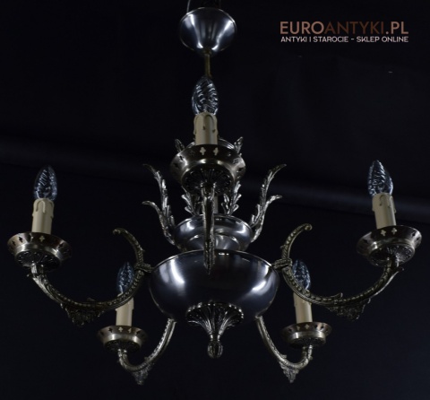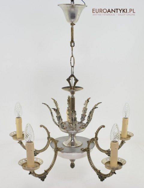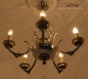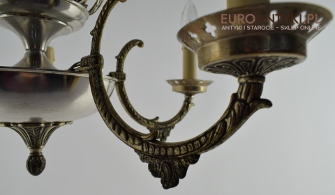 Całość bez uszkodzeń. Przedmiot kompletny. Elektryka sprawna. Standardowe gniazda elektryczne typu E14. Obecnie można kupić żarówki LED o różnym natężeniu, różnej barwie światła i różnym wyglądzie. Nawet mała żarówka może być potężnej mocy i nie będzie pobierać wielu watt, przez co nie przegrzewa i nie uszkodzi kabli elektrycznych. Wszystkie lampy wysyłamy bez żarówek.