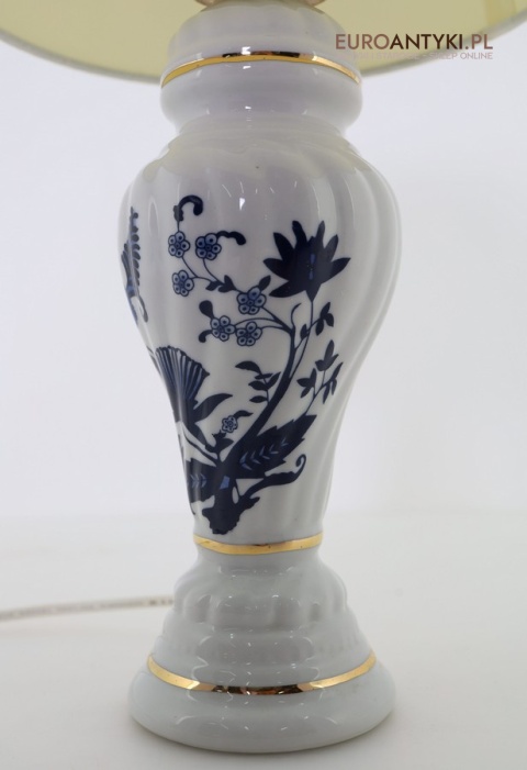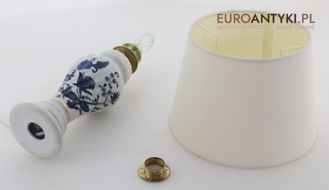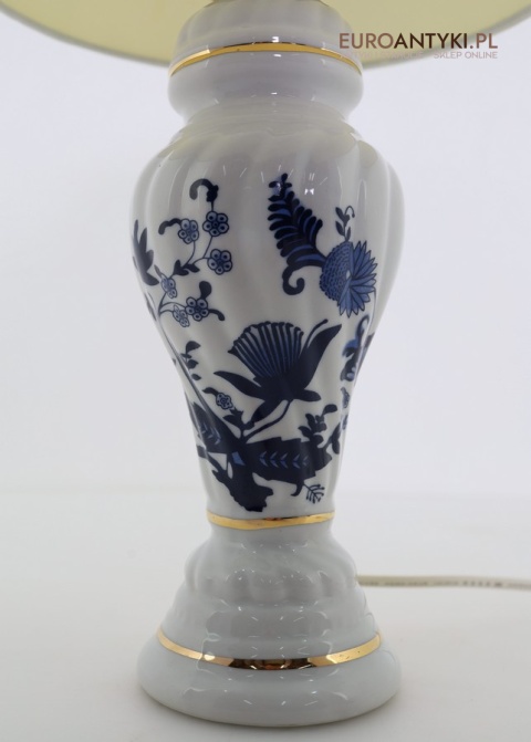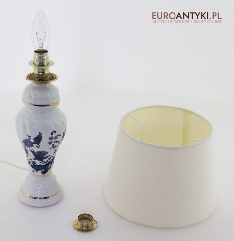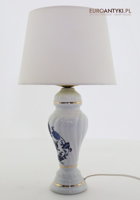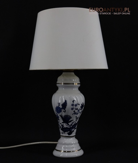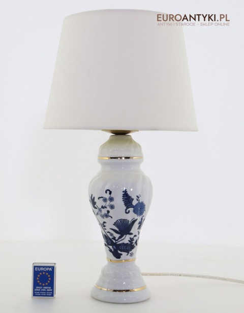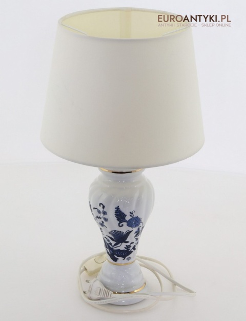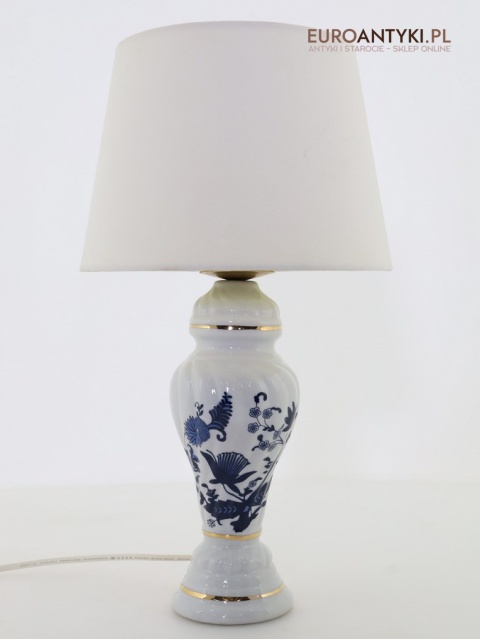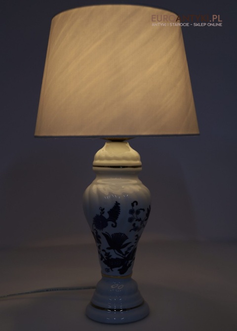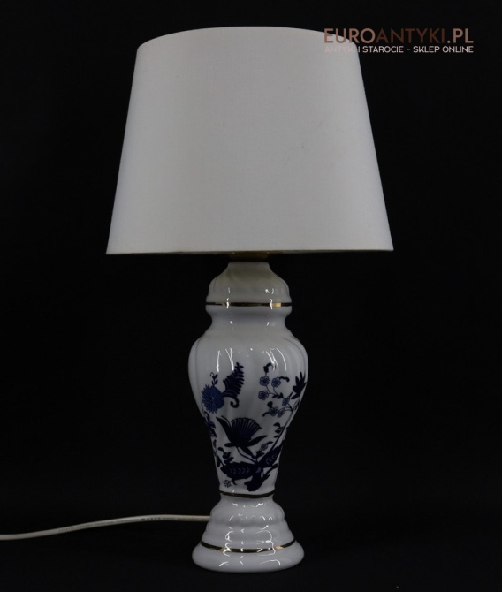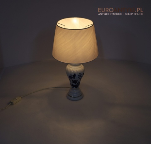 Ta wyjątkowa ceramiczna lampa stołowa to doskonałe połączenie klasyki i elegancji. Pochodząca z końca XX wieku, zachwyca delikatnym wzornictwem, które nawiązuje do tradycyjnej porcelany. Jej smukła, subtelnie zdobiona podstawa została ręcznie udekorowana niebieskimi motywami roślinnymi, które dodają jej artystycznego charakteru. Sprowadzona z Francji. Stan idealny!