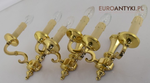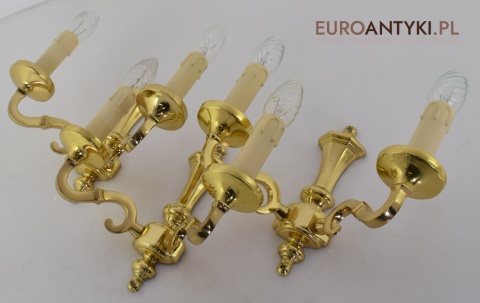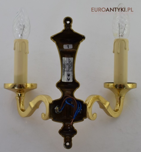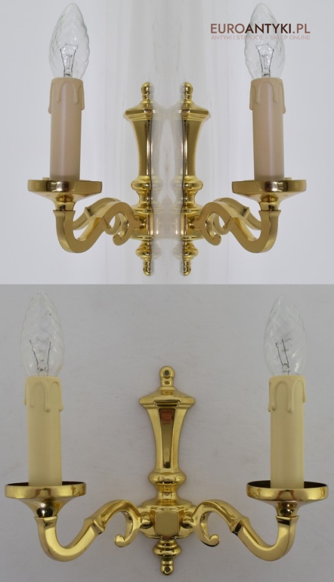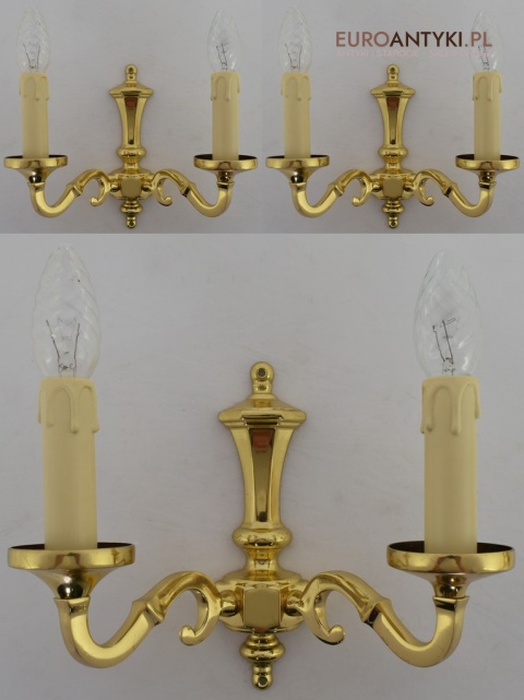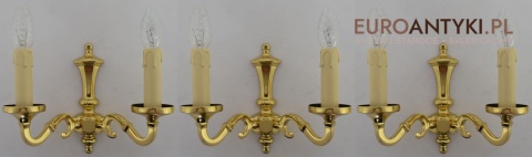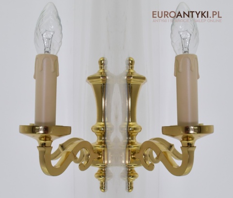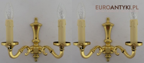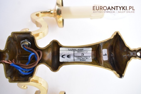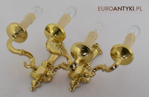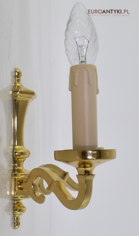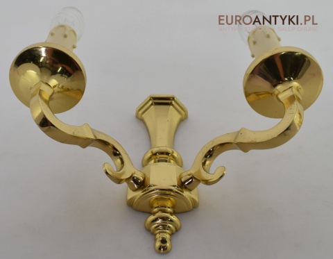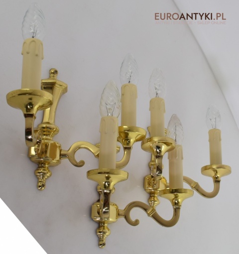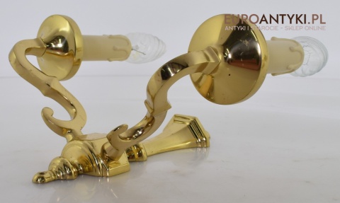 Stylowe złote kinkiety mosiężne w stylu vintage - retro. Antyki lampy.