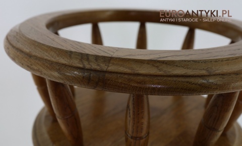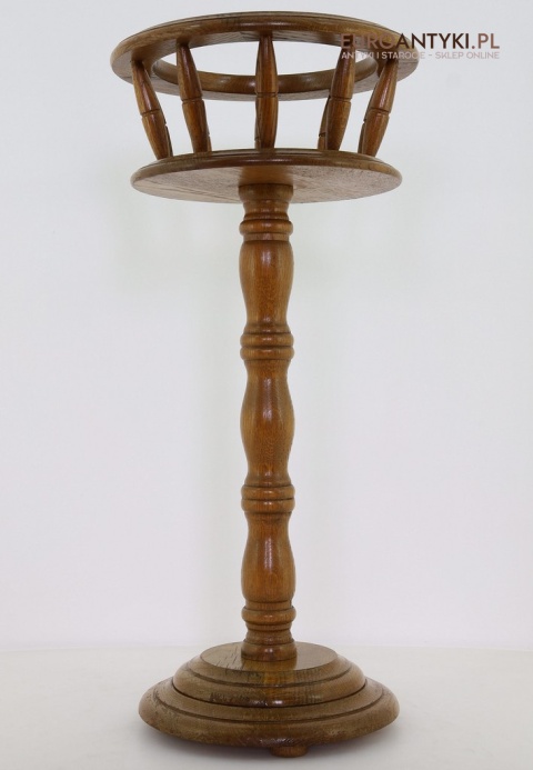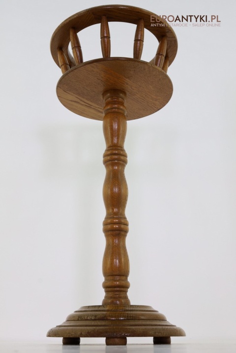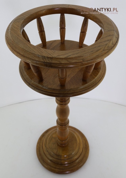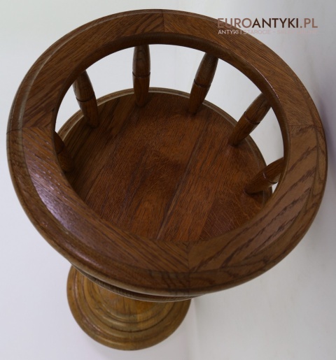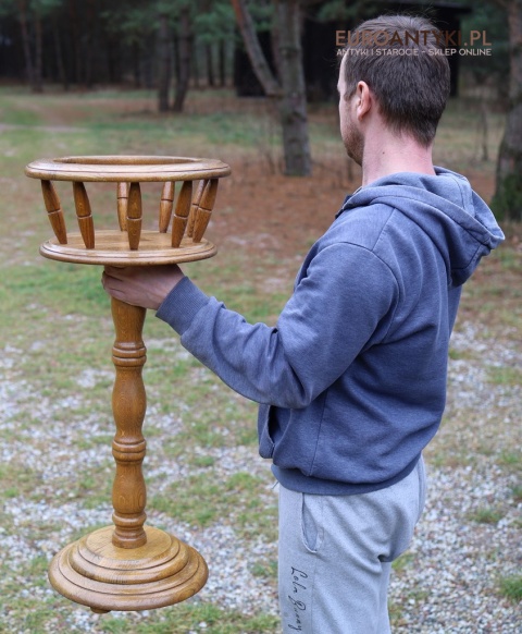 Ten antyczny kwietnik doskonale sprawdzi się jako stylowy stojak na kwiaty w salonie, gabinecie czy oranżerii. Jego klasyczna forma i dębowe wykończenie dodadzą wnętrzu ciepła i charakteru. To również świetny wybór dla miłośników unikatowych dekoracji – takich, które już nie są produkowane w dzisiejszych czasach.