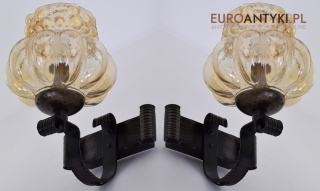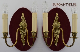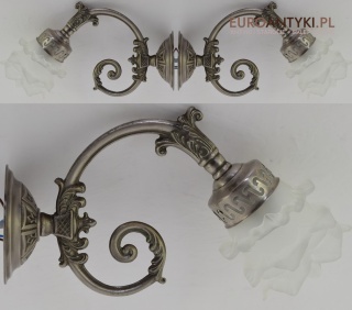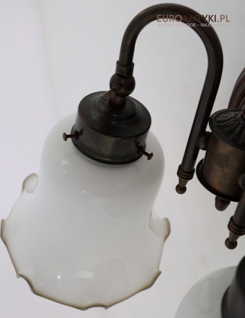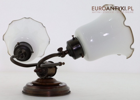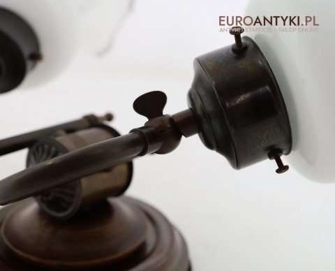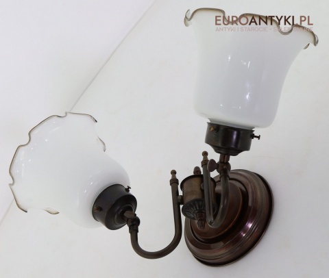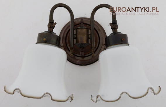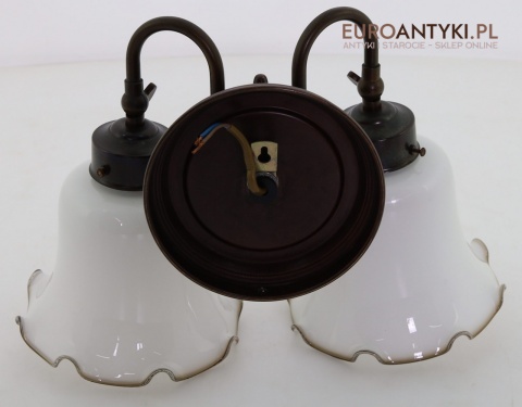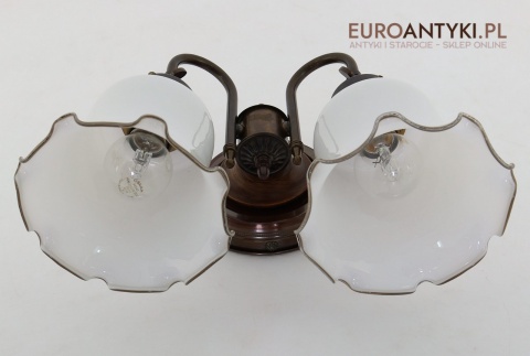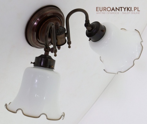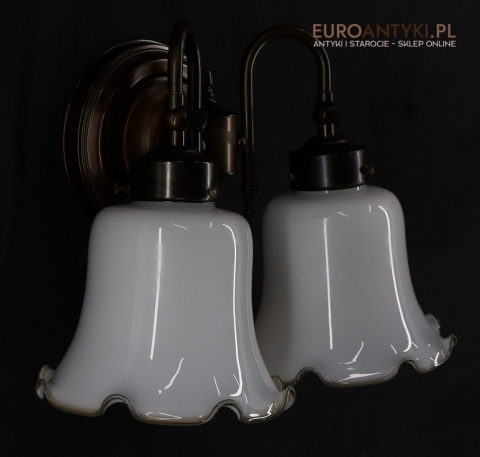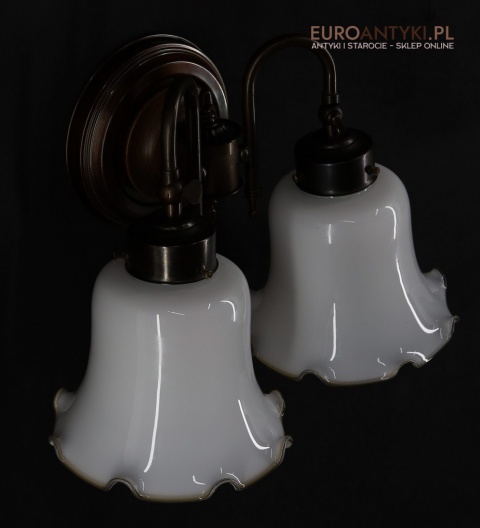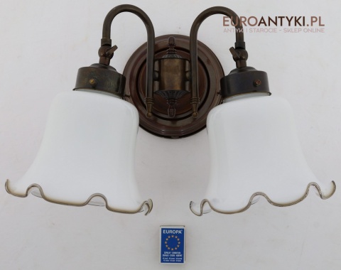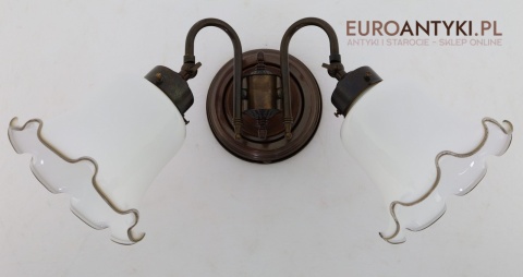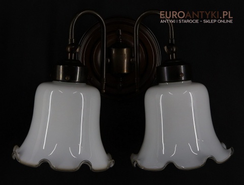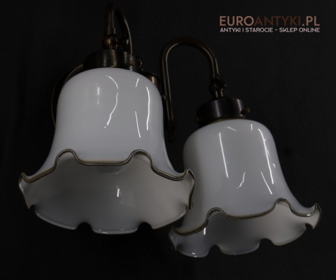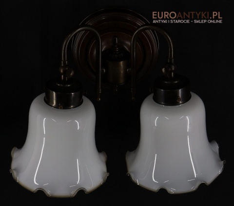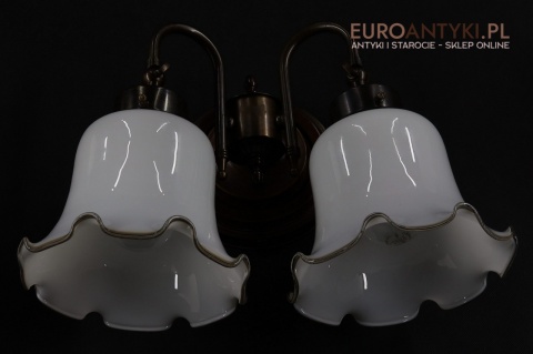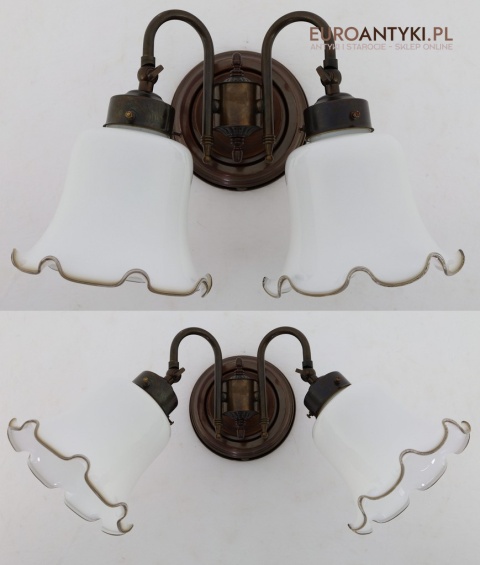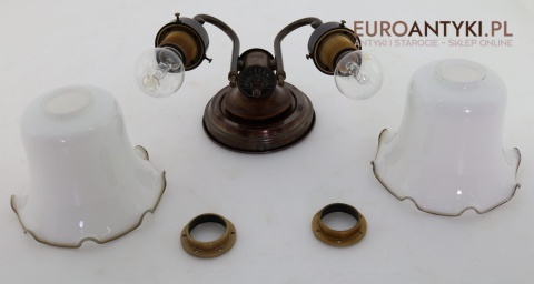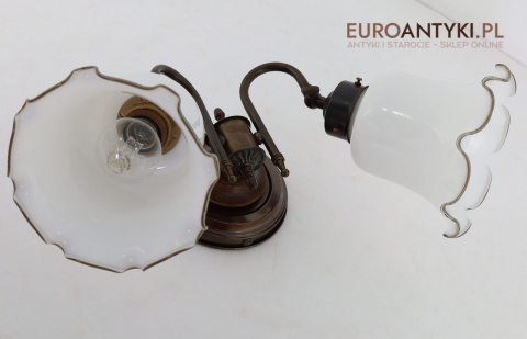 Ekskluzywny kinkiet z mosiądzu + 2 szklane klosze - oświetlenie vintage 100%