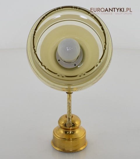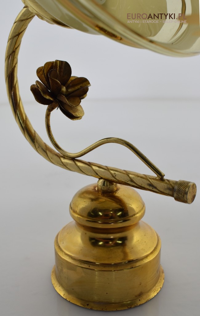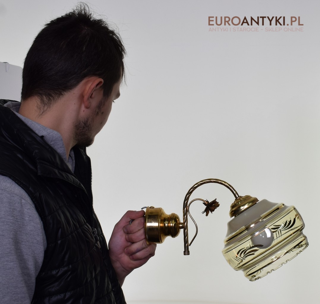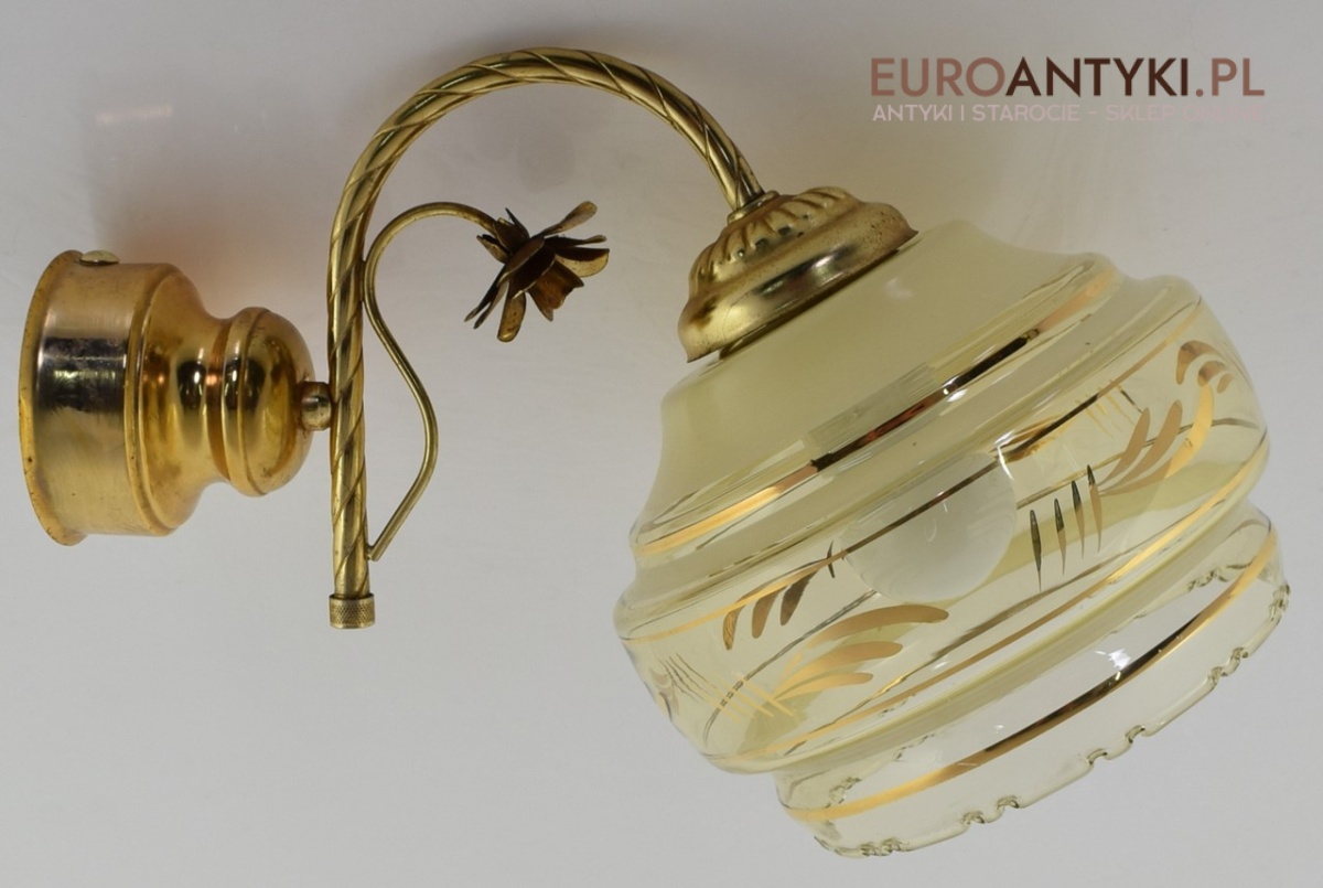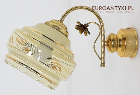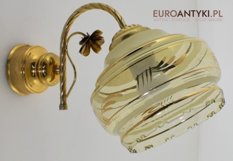 Subtelny kinkiet mosiężny z żółtym kloszem.