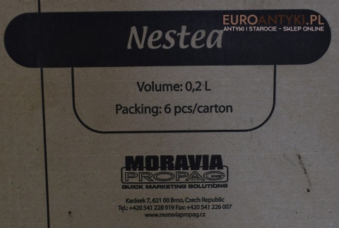 Prezentujemy zestaw szklanek ze szronionego szkła NESTEA o pojemności 0,2L, wyprodukowany przez renomowaną czeską firmę Moravia Propag. Szklanki te są nieużywane i znajdują się w idealnym stanie, co czyni je doskonałym wyborem zarówno do użytku domowego, jak i jako element dekoracyjny.