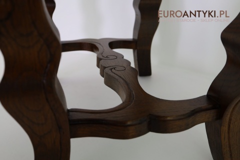 Wykonane z litego drewna, z misternie rzeźbionymi nogami i bogato profilowaną podstawą – są przykładem mistrzowskiego rzemiosła w stylu barokowym. Nadają się jako elementy dekoracyjne lub użytkowe, które dodadzą wnętrzu klasy i autentycznego klimatu. Mogą służyć także jako taboret np.: w sypialni, łazience lub ganku, bo jest bardzo solidny i " nie do połamiania ".