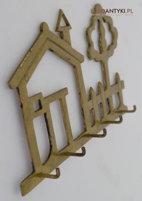 Oferujemy Państwu wyjątkowy wieszak wykonany ze 100% mosiądzu, który stanowi nie tylko praktyczny, ale i dekoracyjny element wnętrza. Wieszak zachwyca swoim rustykalnym stylem, przedstawiającym idylliczny motyw domu z kominem oraz przyległym ogrodzeniem i drzewem. Jest to wyjątkowa ozdoba, która doda charakteru każdej przestrzeni.