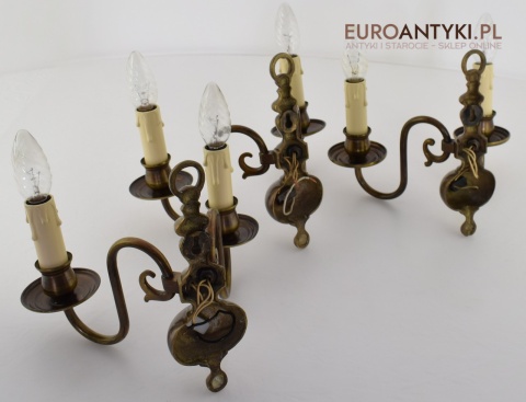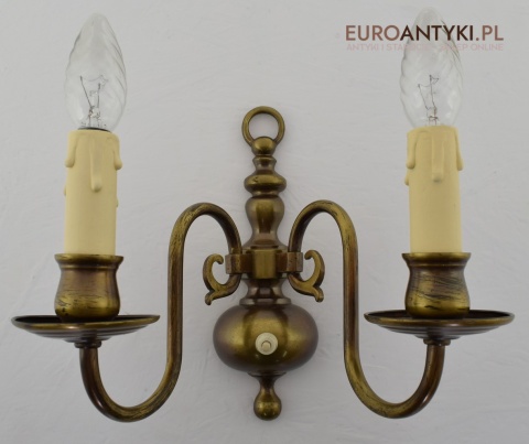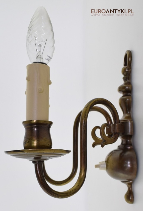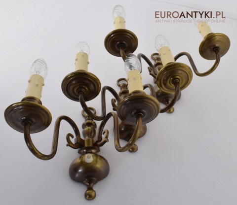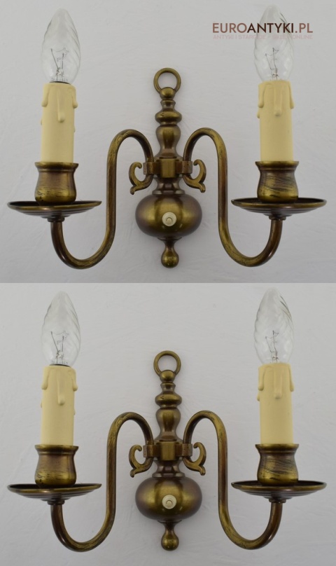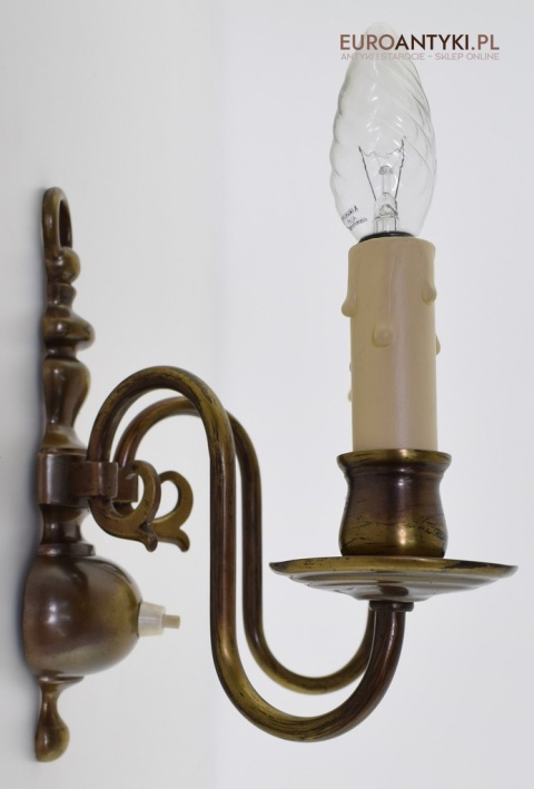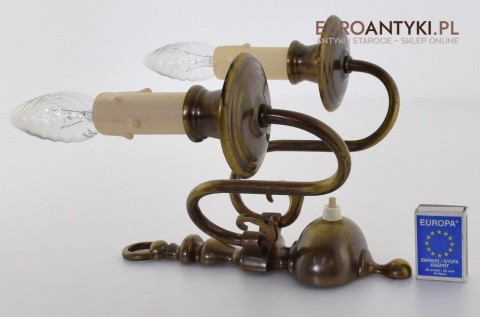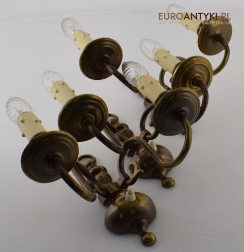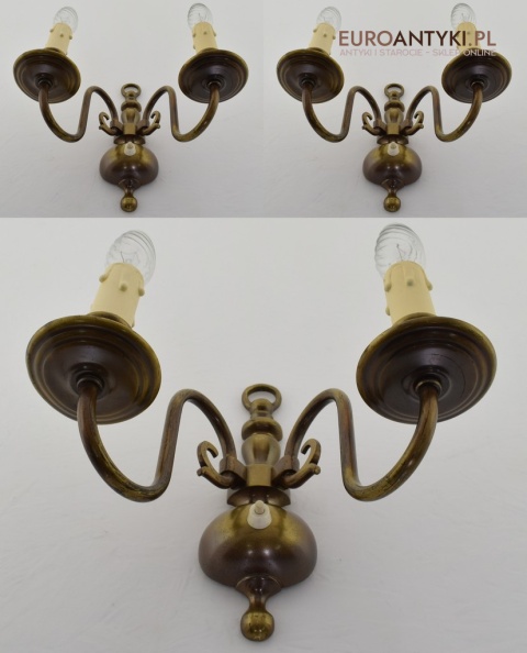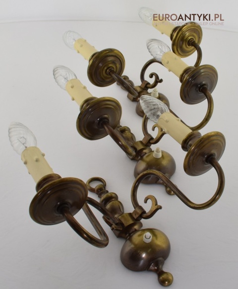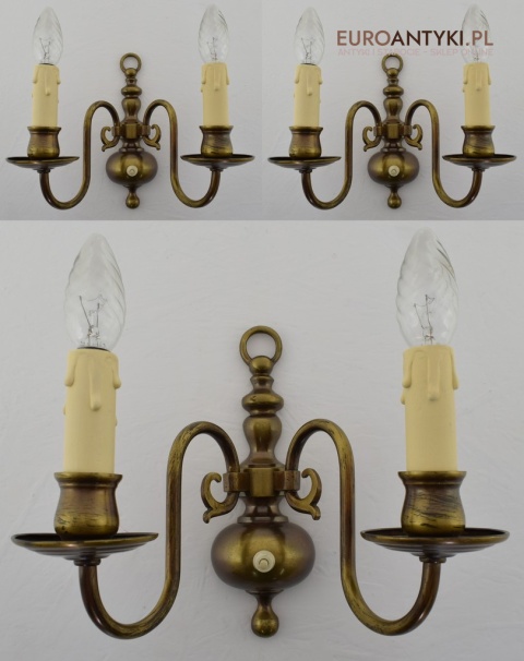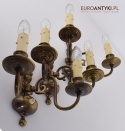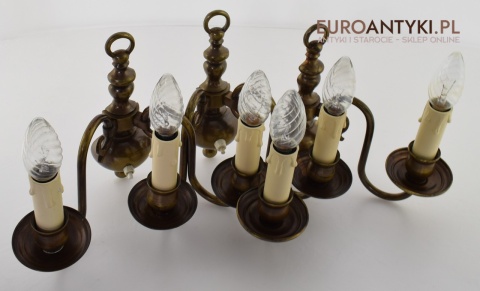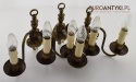 Całość bez uszkodzeń. Przedmiot kompletny, profesjonalnie wyczyszczony. Elektryka sprawna - sprawdzana przez naszego fachowca. Standardowe gniazda elektryczne typu E14. Obecnie można kupić żarówki LED o różnym natężeniu, różnej barwie światła i różnym wyglądzie. Nawet mała żarówka może być dużej mocy i nie będzie pobierać wielu watt, przez co nie przegrzewa i nie uszkodzi kabli elektrycznych. Wszystkie lampy wysyłamy bez żarówek. Żarówki tego typu są łatwo dostępne w sklepach elektrycznych lub w internecie.