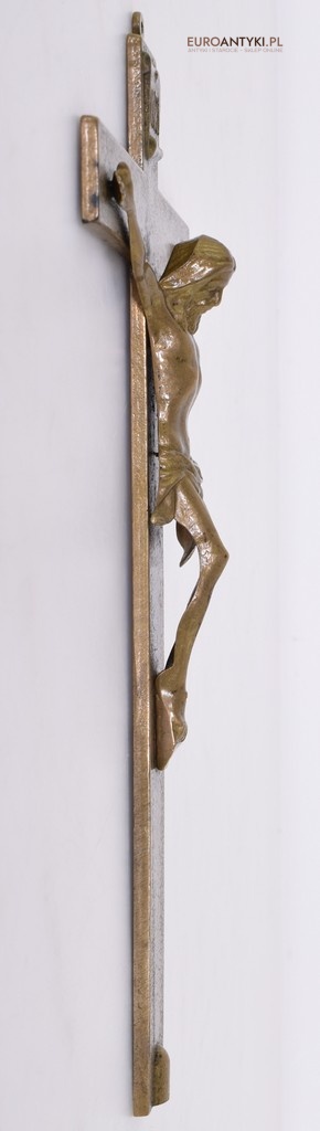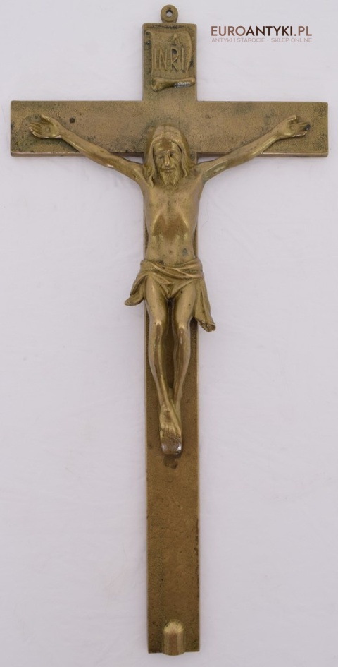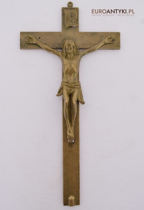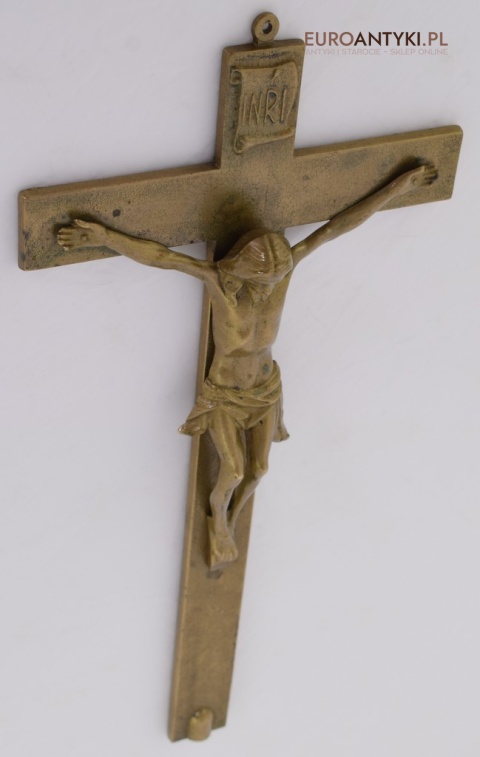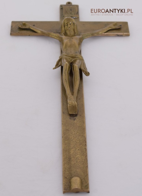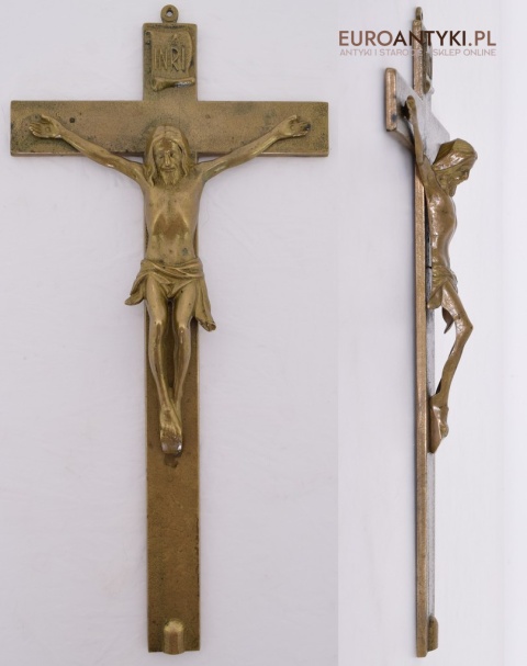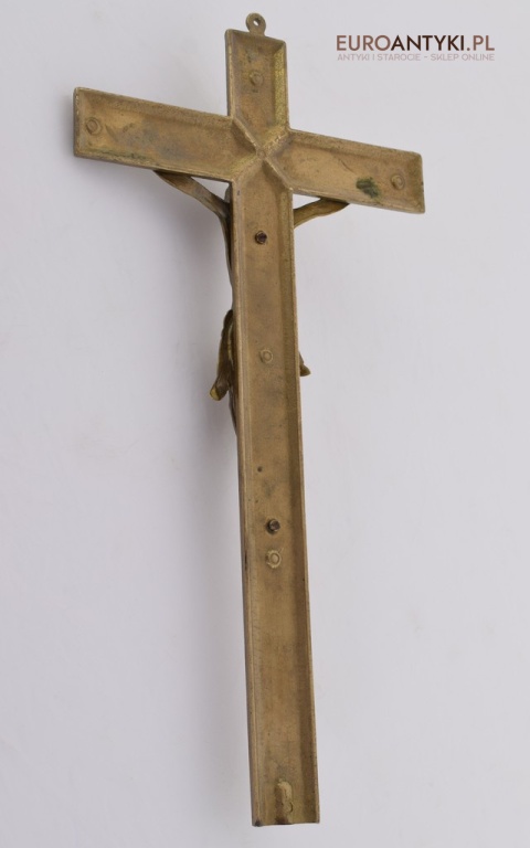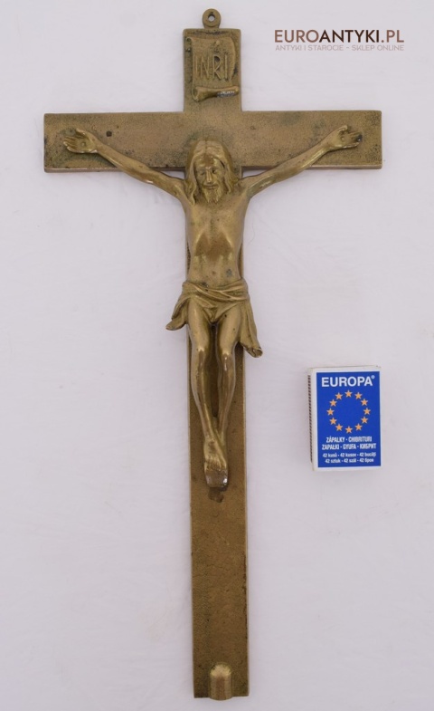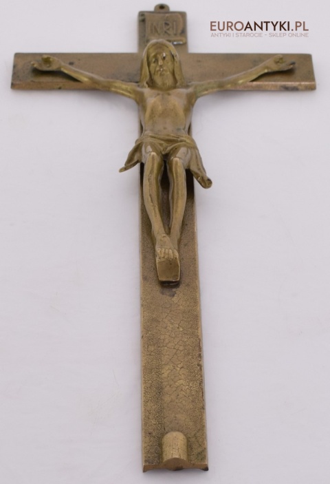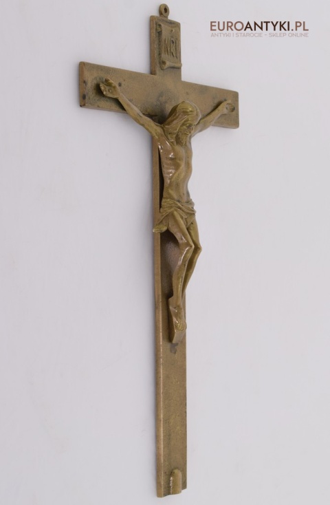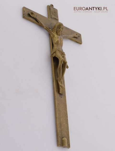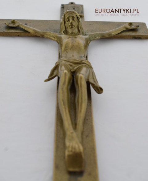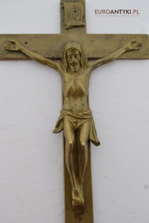 Vintage - masywny krzyż z mosiądzu z postacią Jezusa Chrystusa – II połowa XX wieku