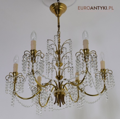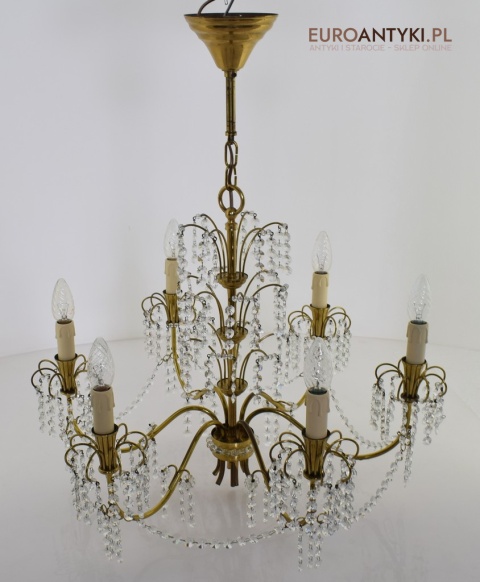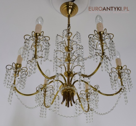 Vintage żyrandol kryształowy Swarovski to prawdziwa perełka dla miłośników antyków i eleganckiego designu. Ten piękny żyrandol pochodzi z Francji i został wykonany w połowie XX wieku, co dodaje mu niepowtarzalnego uroku i historii. Wykonany z mosiądzu oraz wysokiej jakości kryształów stylizowanych na wzór marki Swarovski, jest idealnym dodatkiem do wnętrz o wyrafinowanym charakterze.