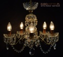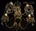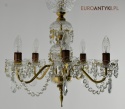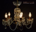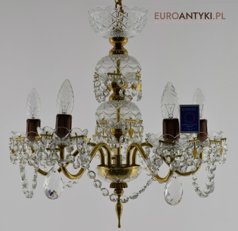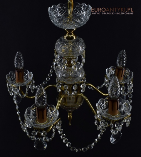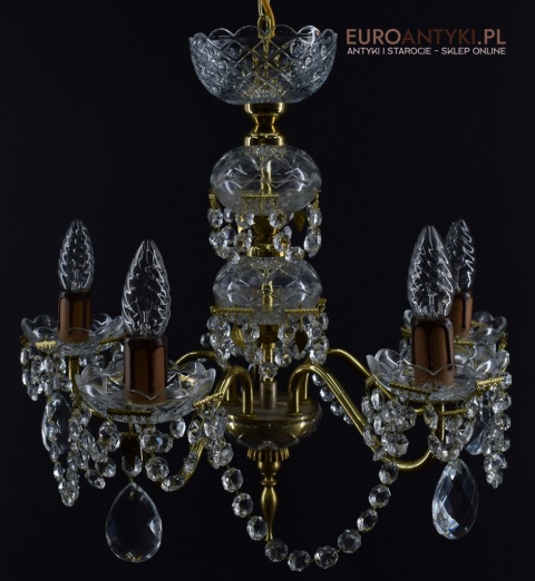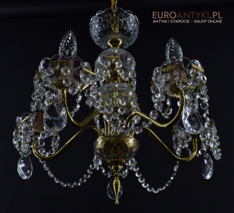 Sprowadzony z Francji. Pochodzi z około 1950 roku. Wykonany z mosiądzu i prawdziwych kryształowych zawieszek + kryształowe rozety pod gilzami + kryształowe rozety w korpusie + mosiężne ozdoby. Zero plastiku.