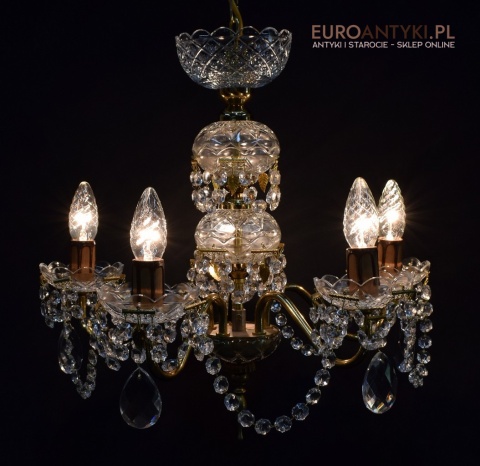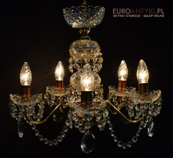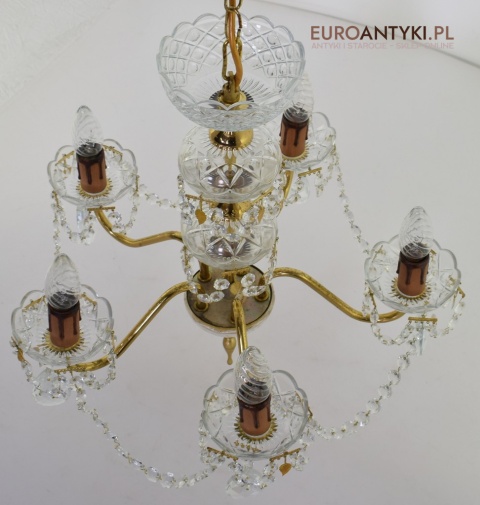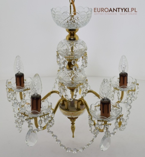 Vintage żyrandol kryształowy z dawnych lat. Lampy antyczne.