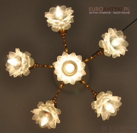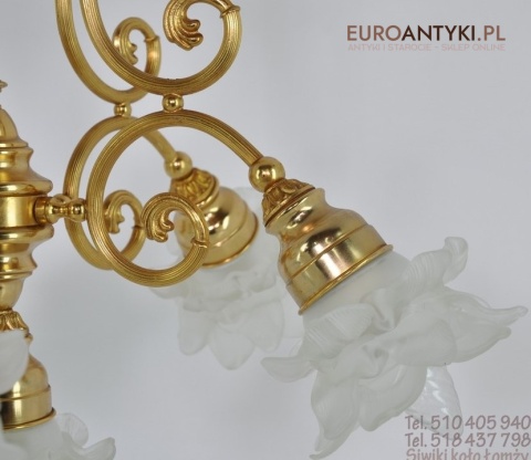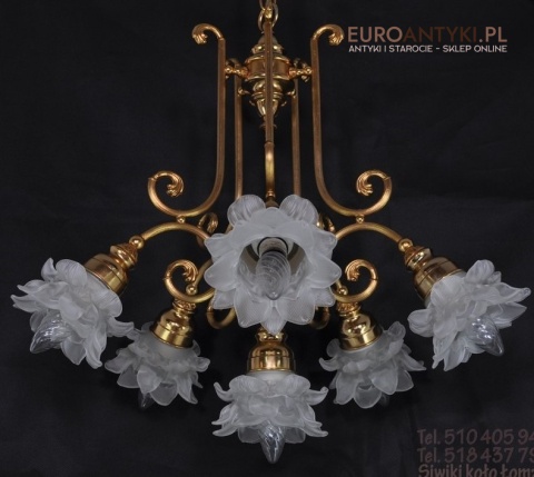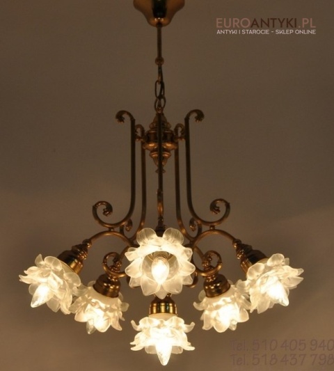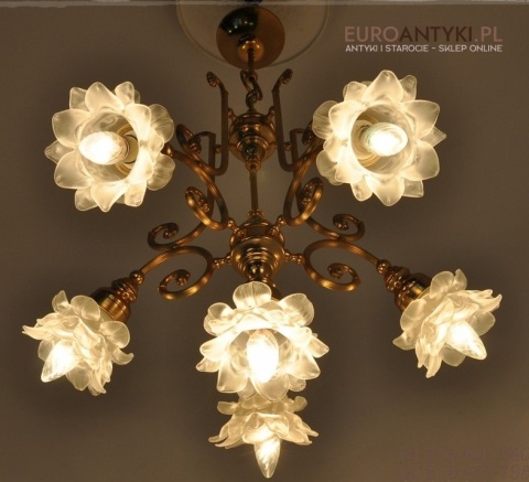 WYJATKOWY STARY DUZY ZYRANDOL Z KLOSZAMI KWIATY x