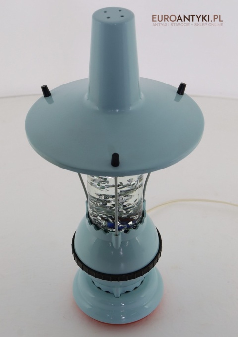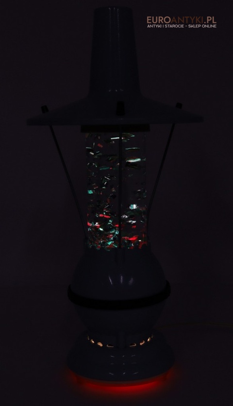 Przedstawiamy wyjątkową radziecką lampę stołową w stylu retro z unikalnym, psychodelicznym efektem oświetlenia. Ten antyczny egzemplarz z lat 90. to prawdziwa gratka dla miłośników nietuzinkowych dekoracji o historycznym charakterze. Po podłączeniu do prądu lampa rozgrzewa specjalny płyn, w którym zaczynają się poruszać srebrzyste elementy, tworząc hipnotyzujący, wręcz surrealistyczny efekt. Wykonana z masywnego metalu + szklany cyliner. Jest to niezwykle rzadki model!