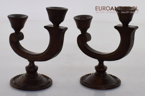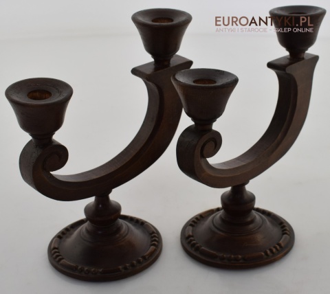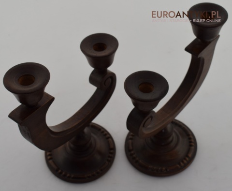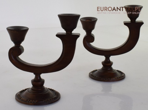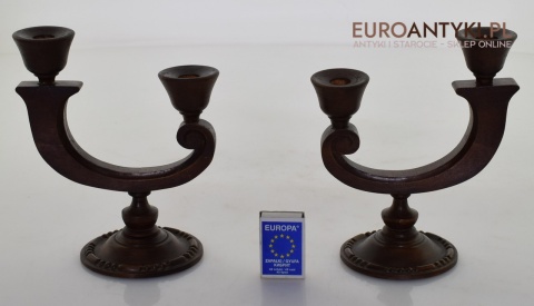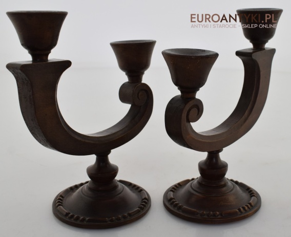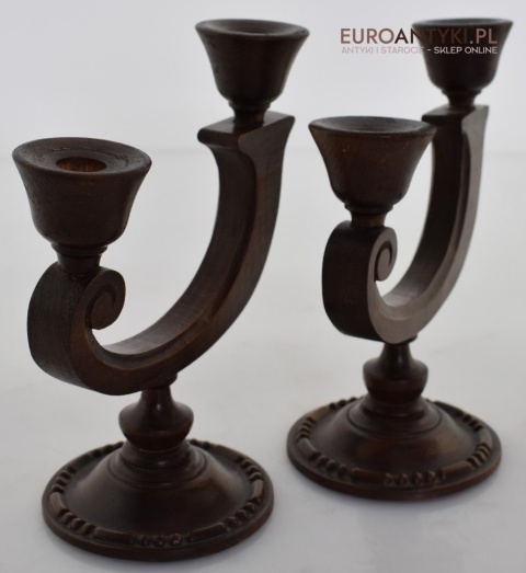 Wiekowe świeczniki drewniane z początku XX wieku - Art Deco Antyki