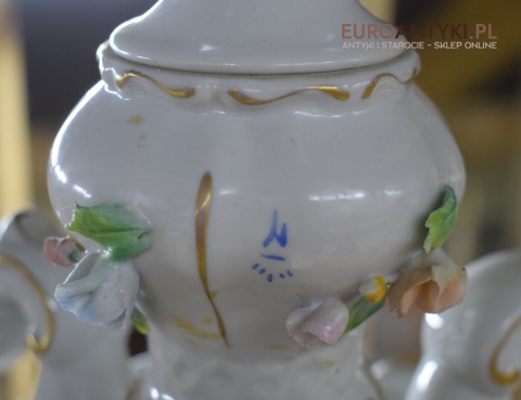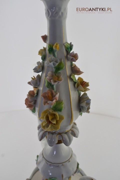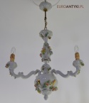 Włoski barokowy żyrandol porcelanowy Bassano z różyczkami.