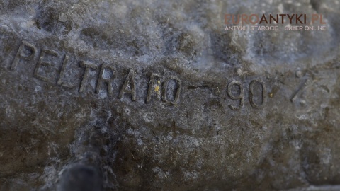 • wskazówka, że mamy do czynienia z włoskim wyrobem cynowym, gdzie „PELTRAFO 90%” oznacza, że zawartość cyny wynosi 90% (czyli standardowa zawartość w wyrobach z pewteru).