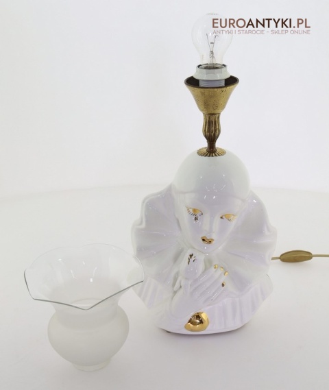 Pierrot - unikatowa lampa pierrot z ceramiki – styl vintage, ceramika, szkło i mosiądz, lata 50./60.