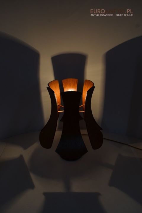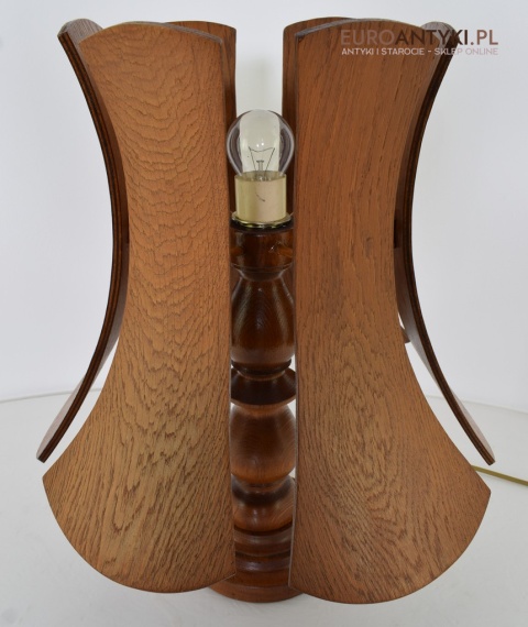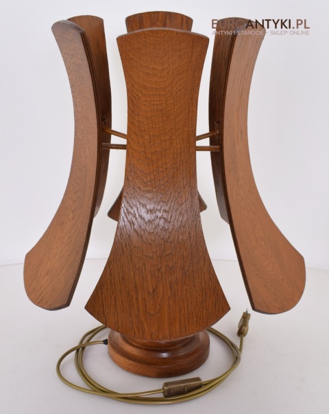 Podstawa lampy wykonana jest z litego dębu, co nadaje jej solidności i elegancji, a zarazem klasycznego uroku. Klosz został stworzony z grubej wyprofilowanej sklejki o ciepłym autentycznym odcieniu drewna, która podkreśla subtelne linie i organiczny kształt tej wyjątkowej lampy. Bardzo ciekowe rozpraszenie światła, tworzące wyjątkową atmosferę w każdym wnętrzu.