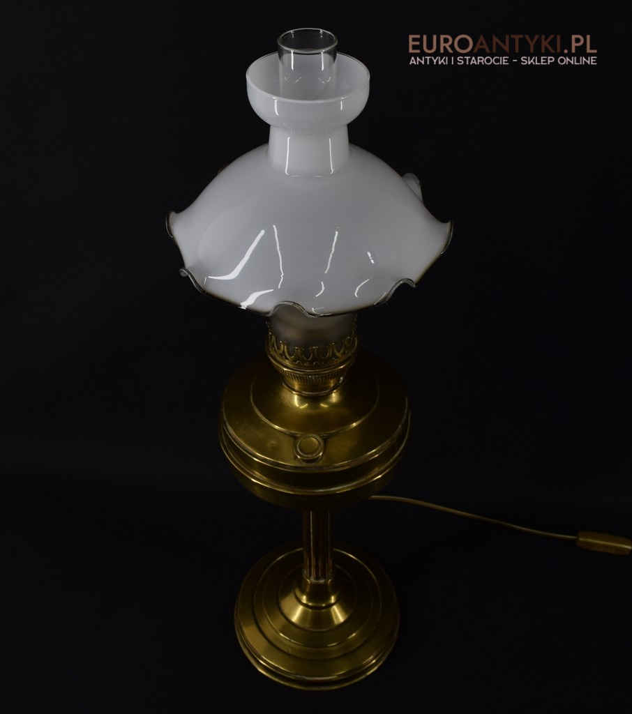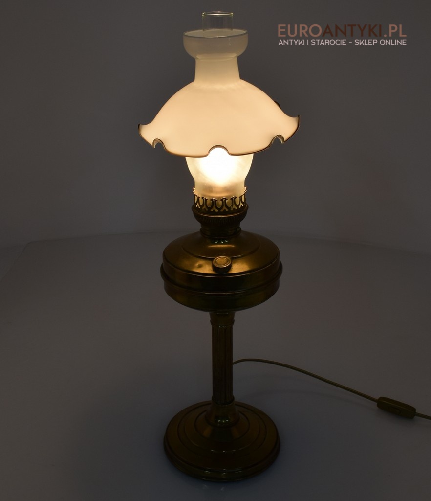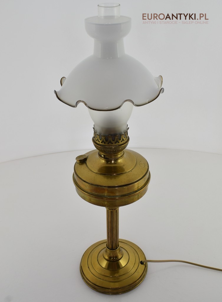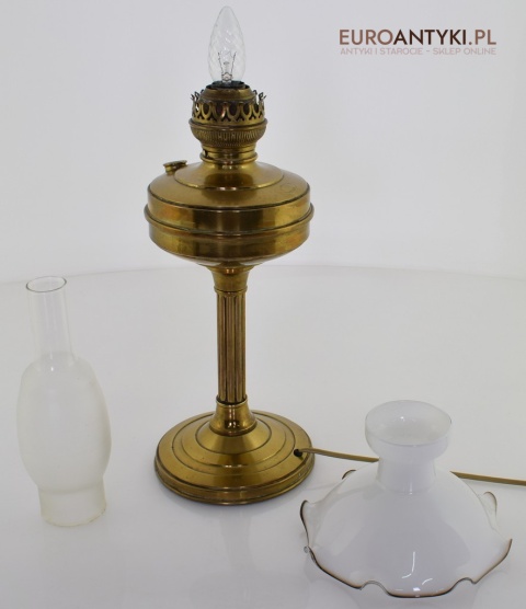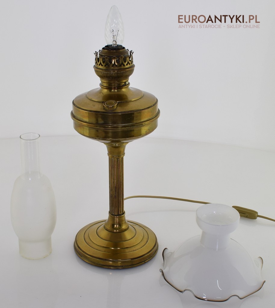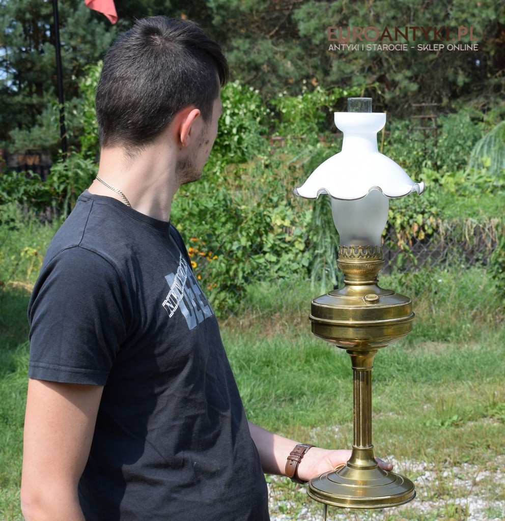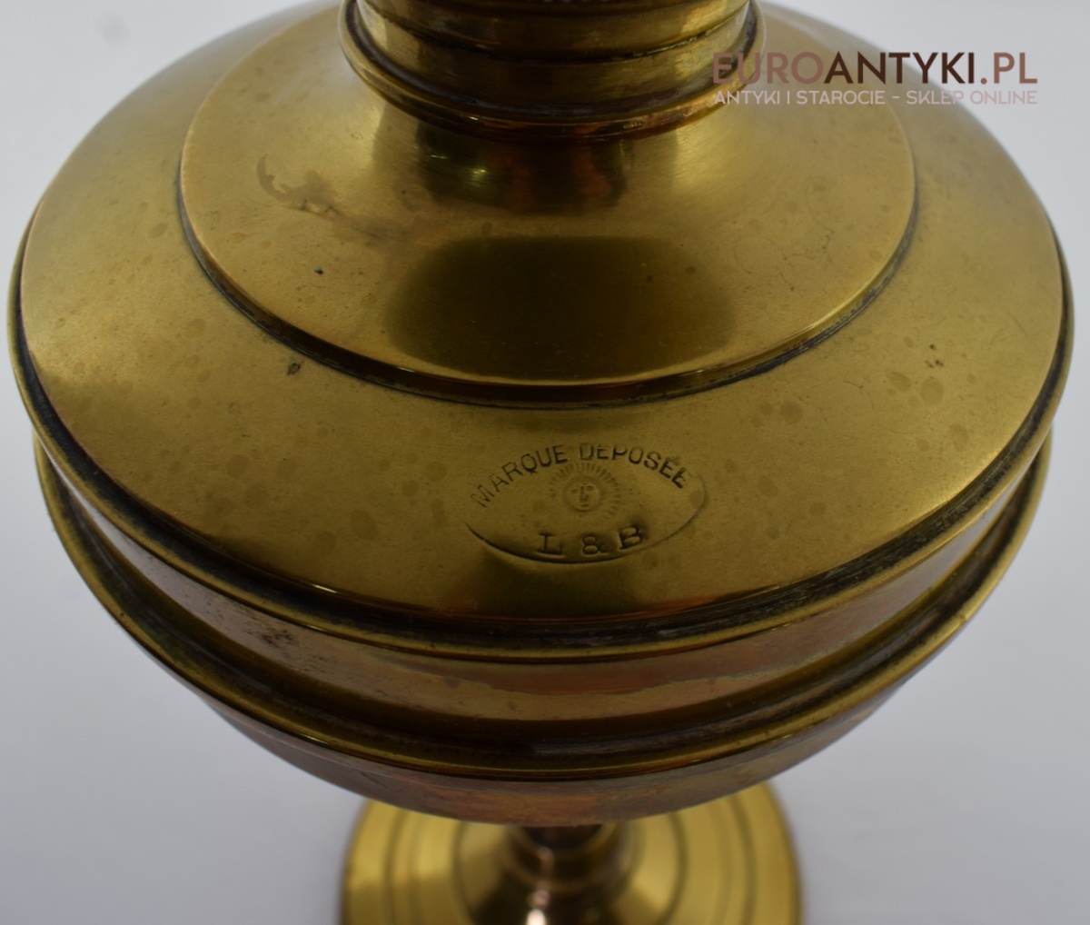 XL! DUŻA stara lampa naftowa L&B Marque Deposee. Lampa stołowa antyk.