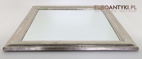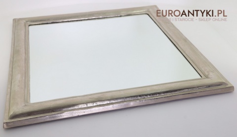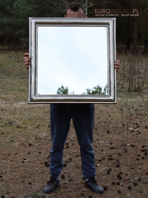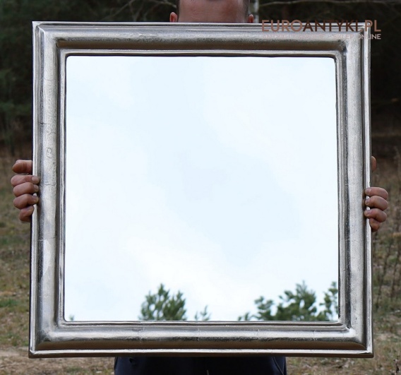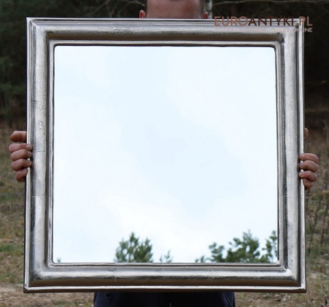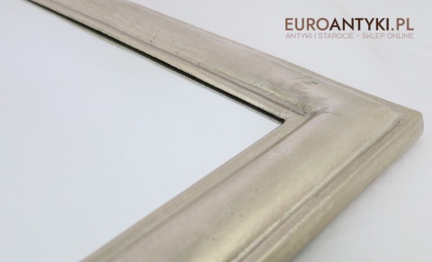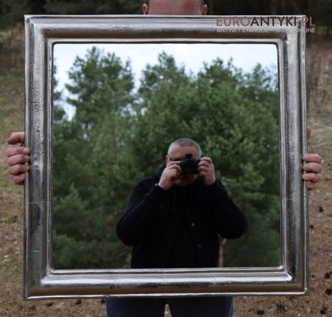 XL! Duże srebrne lustro glamour w masywnej srebrnej ramie - Efekt szlagmetalu