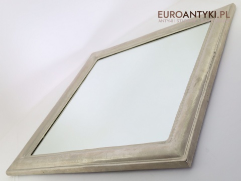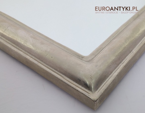 Przedstawiamy stare, stylowe lustro w klimacie glamour, sprowadzone prosto z Francji. Pochodzi z końca XX wieku. Jego masywna rama o srebrnym, matowym wykończeniu szlagmetalowym, to prawdziwa esencja vintage luksusu, doskonale wpisująca się w eleganckie, nowoczesne i klasyczne aranżacje wnętrz.