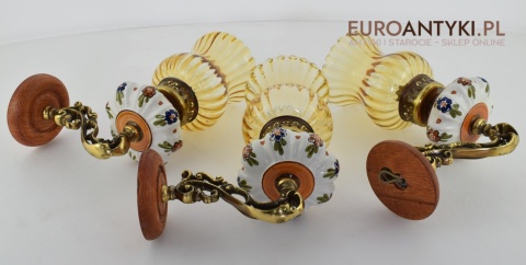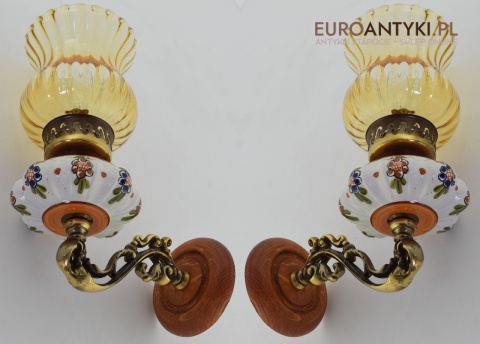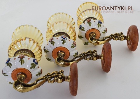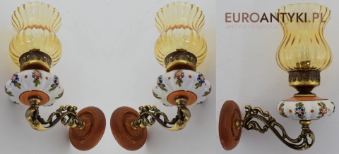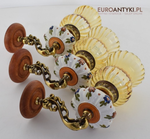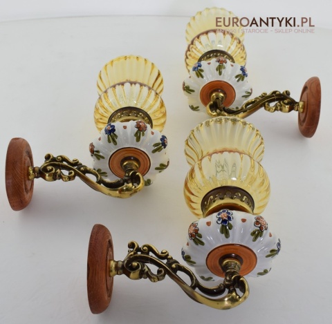 Sprowadzone z Francji, pochodzą z końca XX wieku. Przedstawiamy wyjątkowy zestaw nostalgicznych kinkietów, które wprowadzą do Twojego domu ciepło i przytulną atmosferę. Te eleganckie kinkiety, łączące w sobie ceramikę, mosiądz i dębowe drewno ( rozety ), są idealnym wyborem dla miłośników stylu retro i rustykalnego.