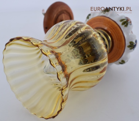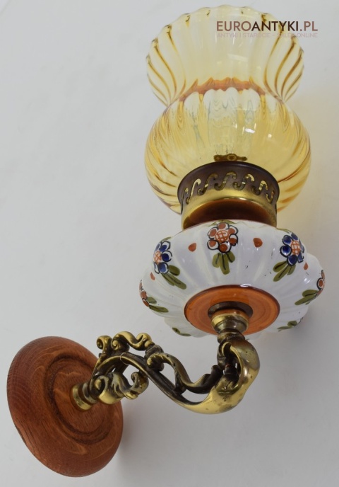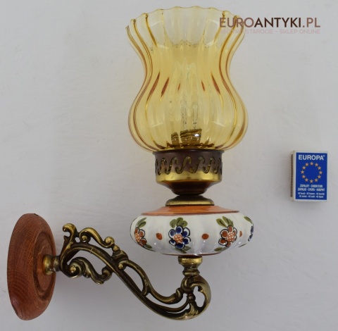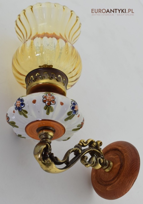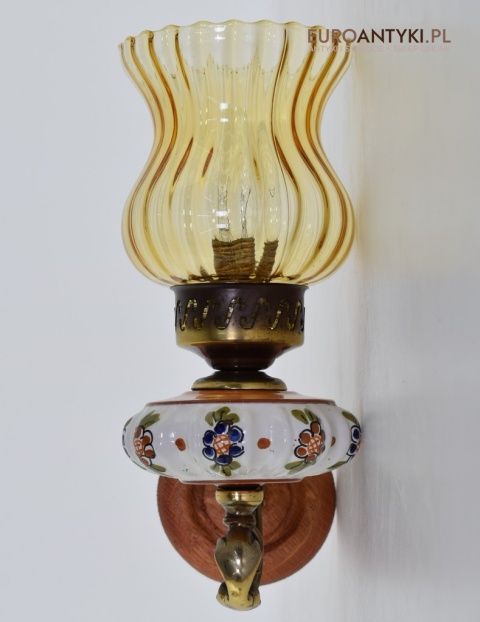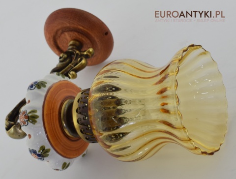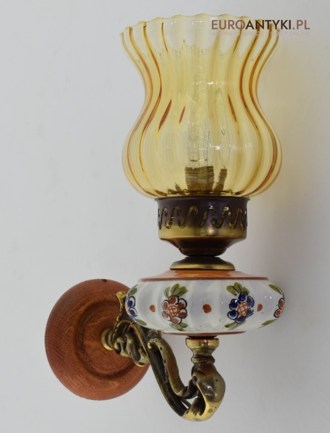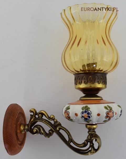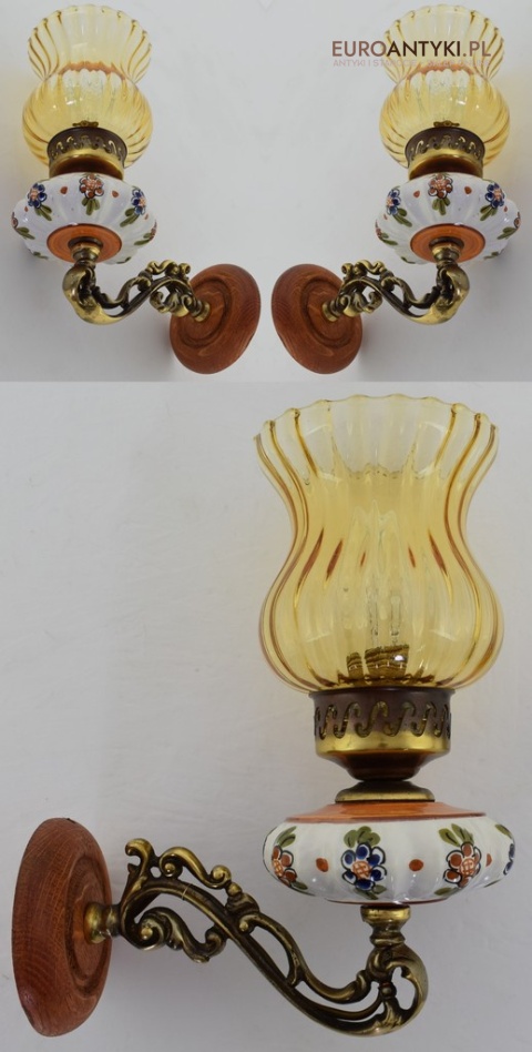 • Design: Każdy kinkiet posiada ceramiczną podstawę z ręcznie malowanymi, kwiatowymi motywami, które dodają im uroku i nostalgicznego charakteru. Klosze wykonane ze szkła w ciepłym, żółtym odcieniu tworzą przyjemne, rozproszone światło.