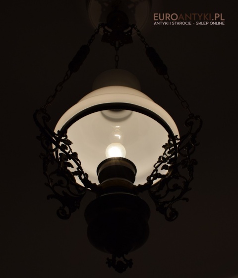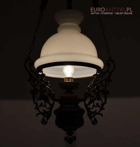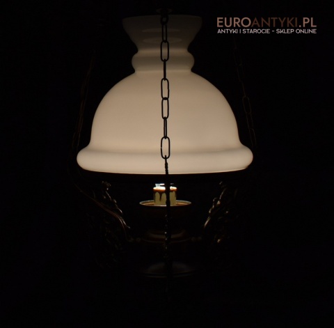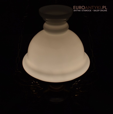 Całość bez uszkodzeń. Przedmiot kompletny, profesjonalnie wyczyszczony. Elektryka sprawna - sprawdzana przez naszego fachowca. Obecnie można kupić żarówki LED o różnym natężeniu, różnej barwie światła i różnym wyglądzie. Nawet mała żarówka może być dużej mocy i nie będzie pobierać wielu watt, przez co nie przegrzewa i nie uszkodzi kabli elektrycznych. Wszystkie lampy wysyłamy bez żarówek. Żarówki tego typu są łatwo dostępne w sklepach elektrycznych lub w internecie.
