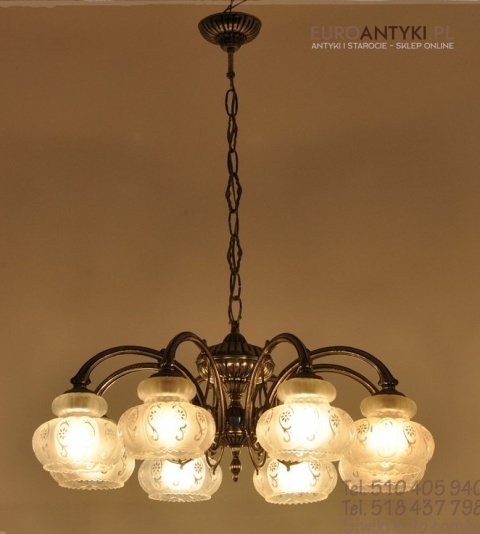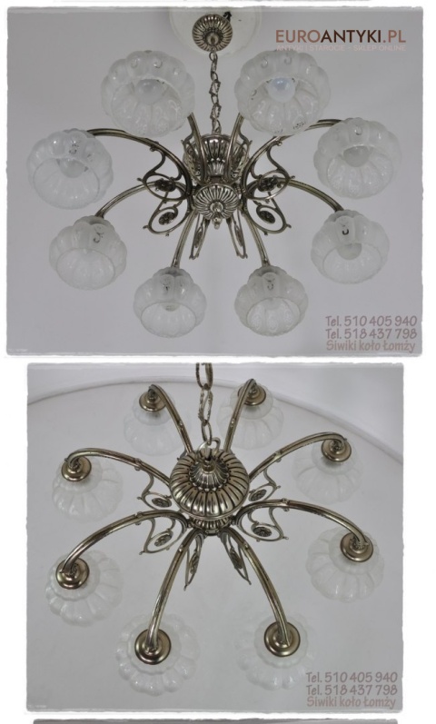 XL DUZY STARY SREBRNY ZYRANDOL Z KLOSZAMI ANTYK XL