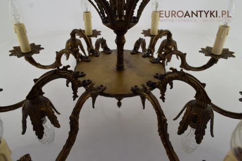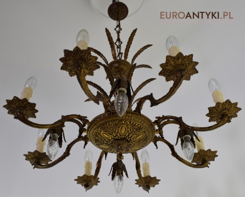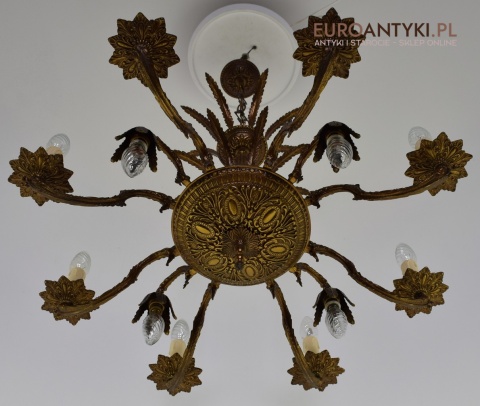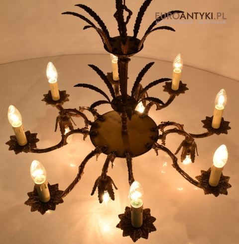 XL! DUŻY! Fantastyczny żyrandol mosiężny z połowy ubiegłego wieku.