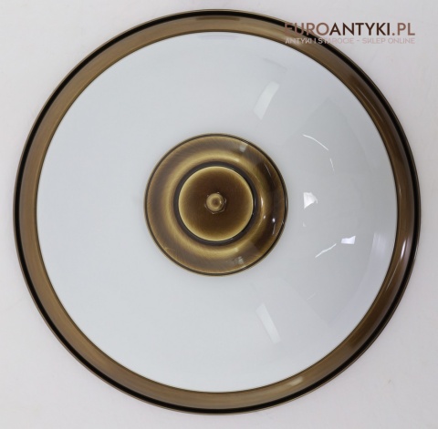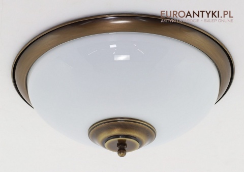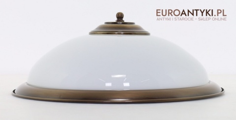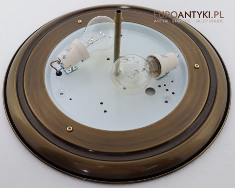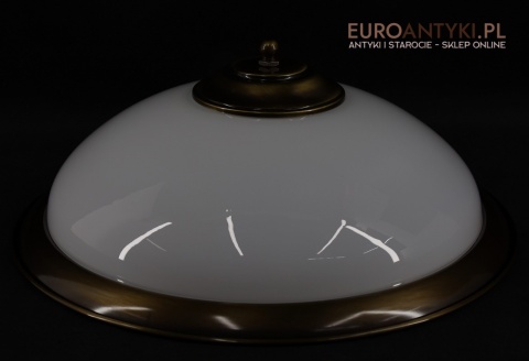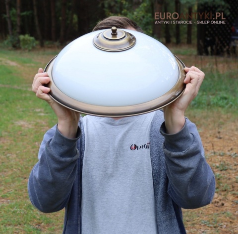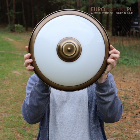 Prezentujemy sprowadzony z Francji - XL duży plafon rustykalny pochodzący z drugiej połowy XX wieku. Wykonany z wysokiej jakości mosiądzu oraz wyposażony w szklany klosz, plafon ten doskonale wpisuje się w 100% retro rustykalny styl. To wyjątkowy element oświetlenia, który nie tylko spełni swoją funkcję praktyczną, ale także doda uroku i charakteru każdemu wnętrzu.