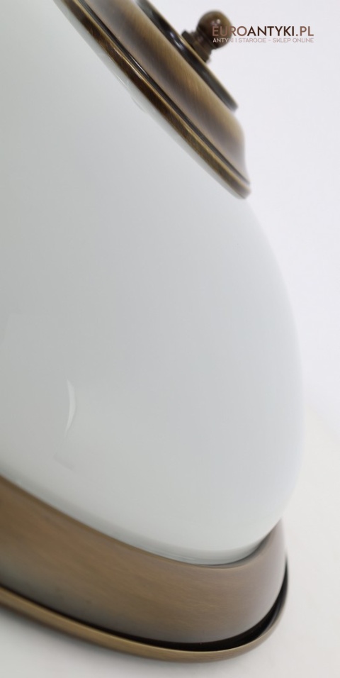 Ten plafon został sprowadzony z Francji i jest w bardzo dobrym stanie. Jego solidna konstrukcja z mosiądzu oraz klosz wykonany ze szkła są w idealnym stanie, bez żadnych pęknięć czy zarysowań. To doskonały wybór dla miłośników antyków, którzy cenią sobie autentyczność i trwałość przedmiotów z przeszłości.