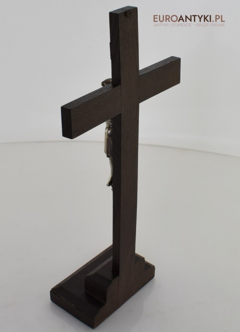 Ten imponujący krzyż ma maksymalną wysokość wynoszącą 51 cm oraz szerokość 25,5 cm. Podstawa ma wymiary 17 cm na 10 cm, co zapewnia stabilność zarówno podczas stawiania go na stole jak i zawieszania na ścianie. Pomimo swojej solidnej konstrukcji, waży jedynie 1,2 kg, co ułatwia jego przenoszenie i manipulację.