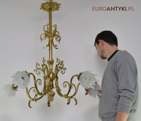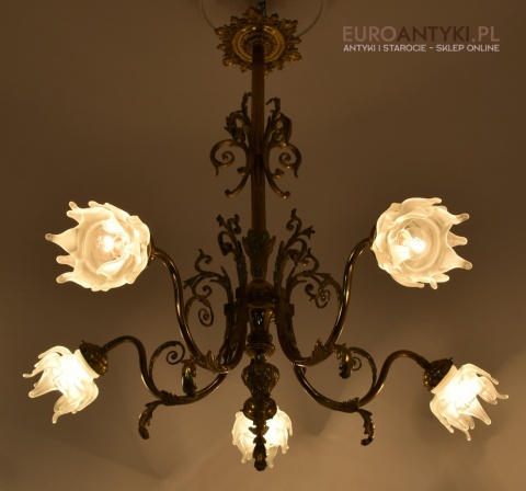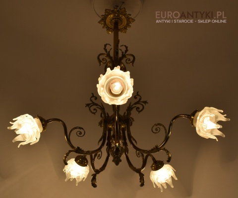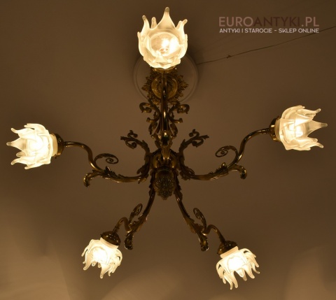 XL! DUŻY! Muzealny żyrandol secesyjny z lat 1930.