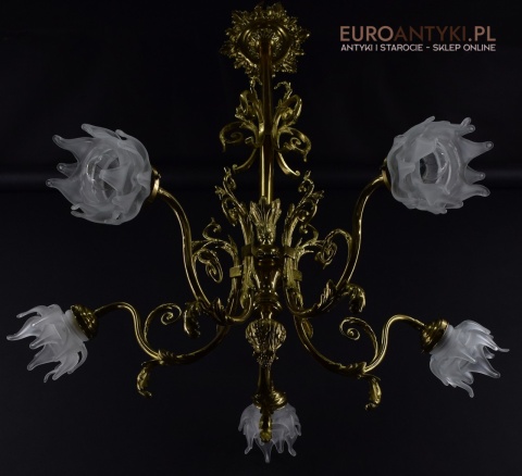 Styl tego żyrandola bym określił jako eklektyczny, podchodzący najbardziej pod secesje i barok/rokoko.