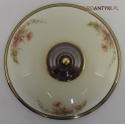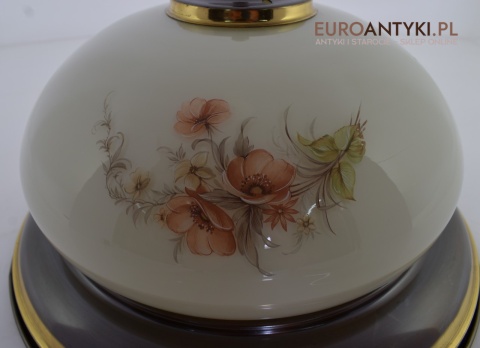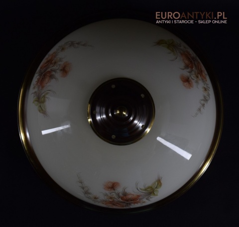 Całość bez uszkodzeń. Przedmiot kompletny, profesjonalnie wyczyszczony. Elektryka sprawna - sprawdzana przez naszego fachowca. Standardowe gniazda elektryczne typu E27. Obecnie można kupić żarówki LED o różnym natężeniu, różnej barwie światła i różnym wyglądzie. Nawet mała żarówka może być dużej mocy i nie będzie pobierać wielu watt, przez co nie przegrzewa i nie uszkodzi kabli elektrycznych. Wszystkie lampy wysyłamy bez żarówek. Żarówki tego typu są łatwo dostępne w sklepach elektrycznych lub w internecie.