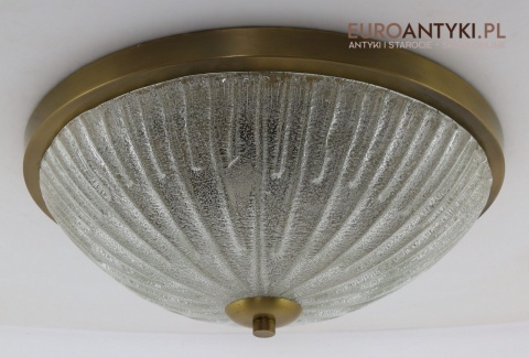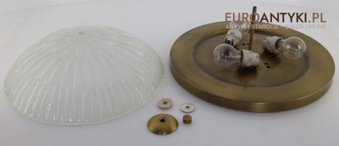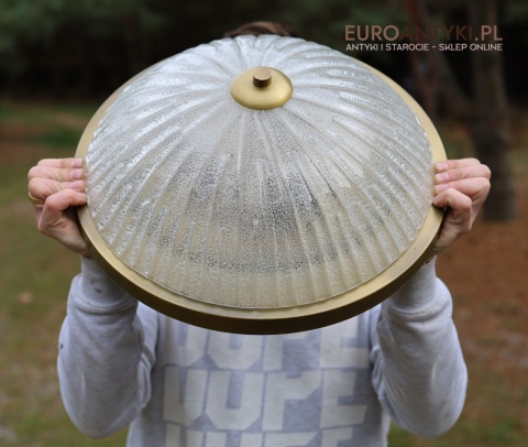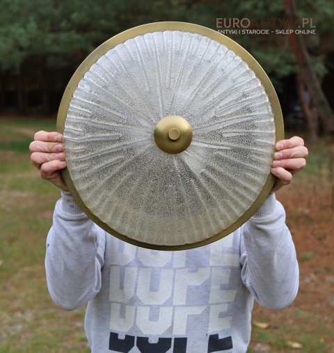 XL! DUŻY! Elegancki plafon z lat 60-70. – Oświetlenie retro z mosiądzu i szkła