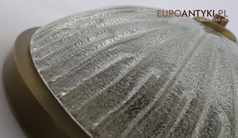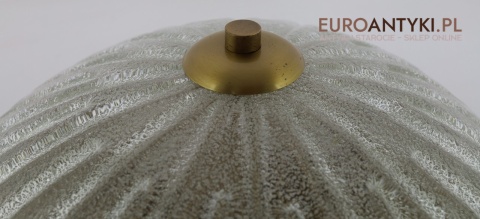 Ten unikalny plafon vintage będzie pięknym dodatkiem do salonu, jadalni lub gabinetu urządzonego w stylu klasycznym lub retro. Mosiądz, który stanowi ramę tej lampy, jest materiałem bardzo cenionym za swoją trwałość i ponadczasowy wygląd. Szklany klosz bąbelkowy dodaje całości oryginalnego uroku, a także przyjemnie rozprasza światło, tworząc nastrojową atmosferę. Takich lamp już się nie produkuje – jest to prawdziwy antyk, który posłuży przez kolejne lata, będąc świadectwem mistrzowskiego rzemiosła.