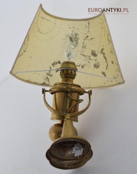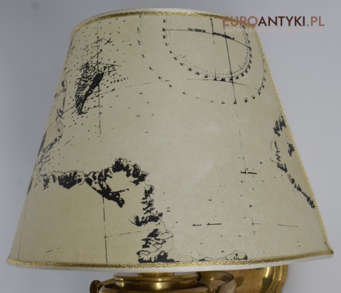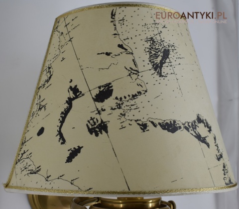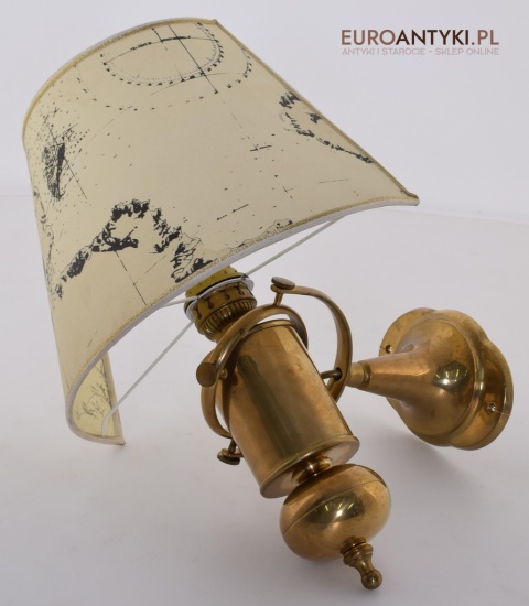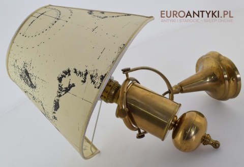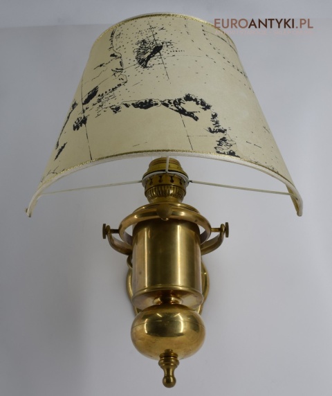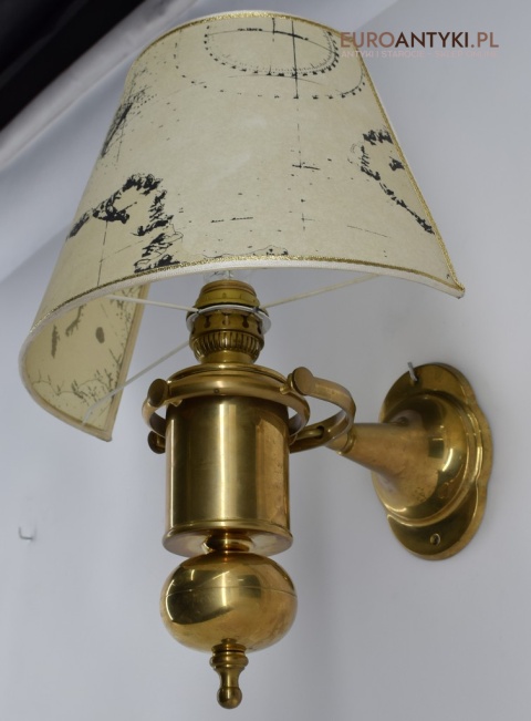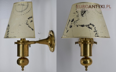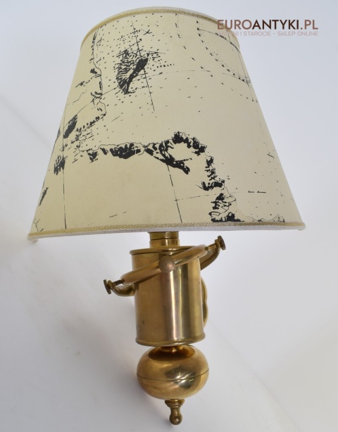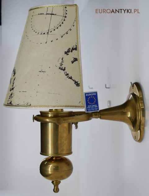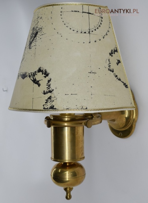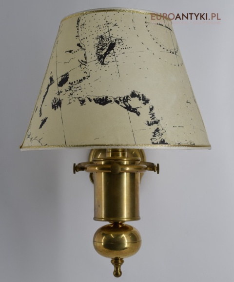 Oferujemy XL dużą lampę marynistyczną stylizowaną na kinkiet żeglarski, idealną dla miłośników morskich klimatów. Ten unikatowy kinkiet wykonany jest z solidnego mosiądzu, co zapewnia trwałość i elegancję. Kluczowym elementem dekoracyjnym jest abażur z mapą, nadający lampie autentyczny, żeglarski charakter. Bez uszkodzeń. Profesjonalnie wyczyszczone - 100% OK!