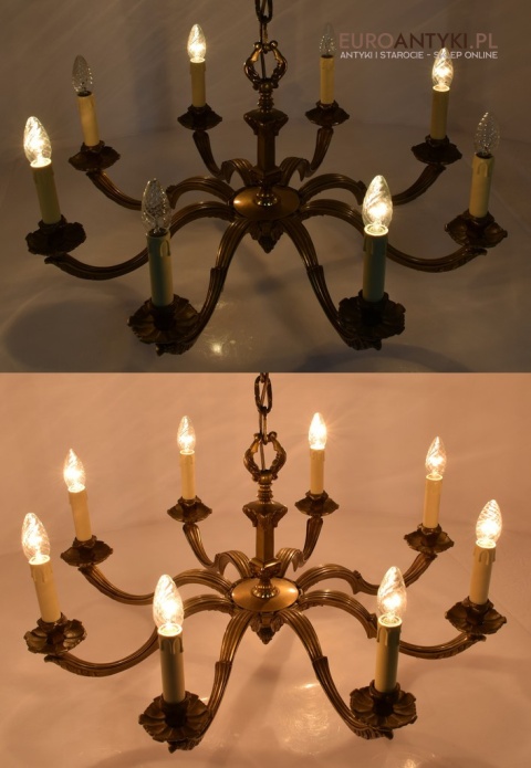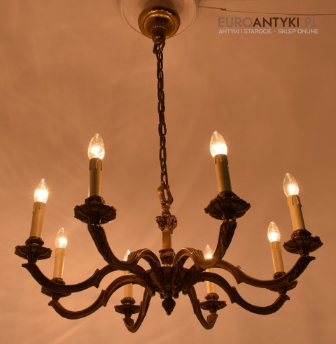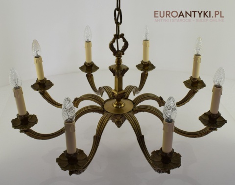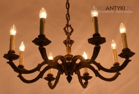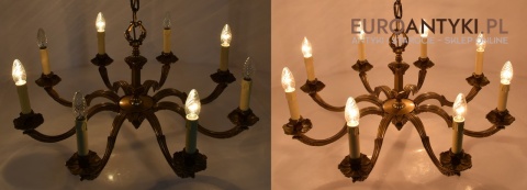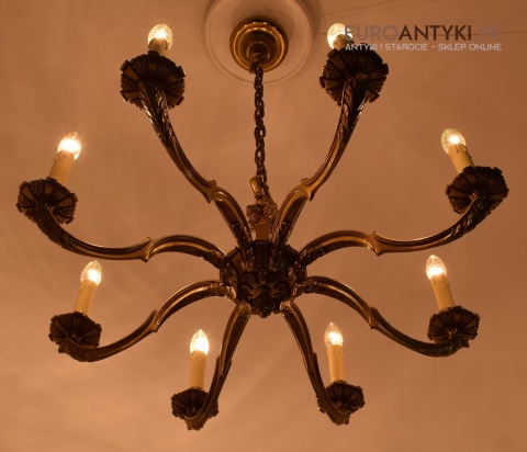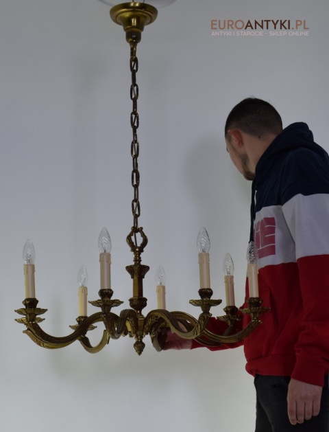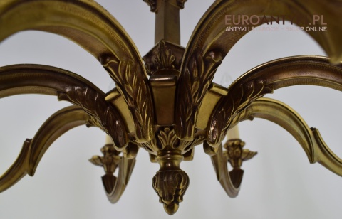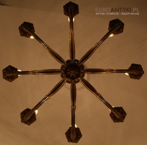 XL! Monumentalny stylowy żyrandol salonowy z brązu z dawnych lat.