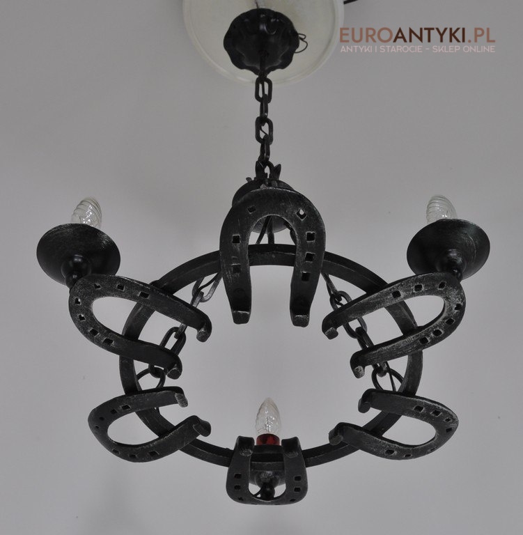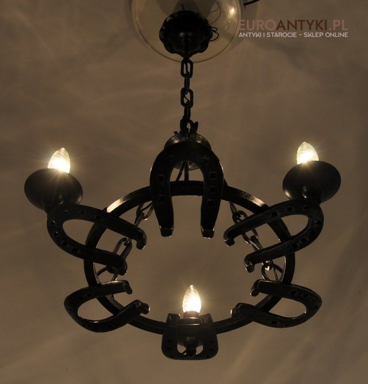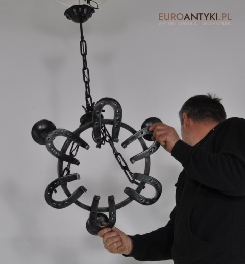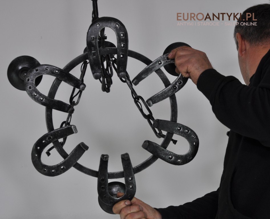 XL STARY DUZY KUTY ZYRANDOL Z PODKOW KONSKICH x