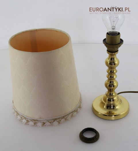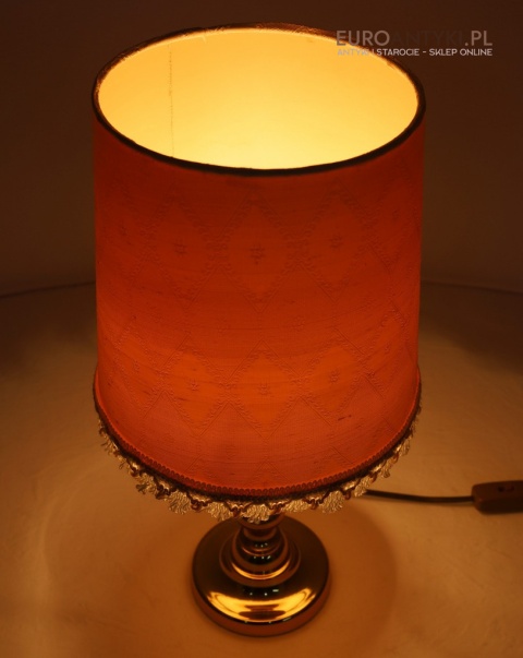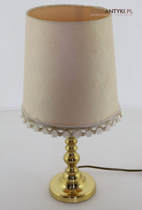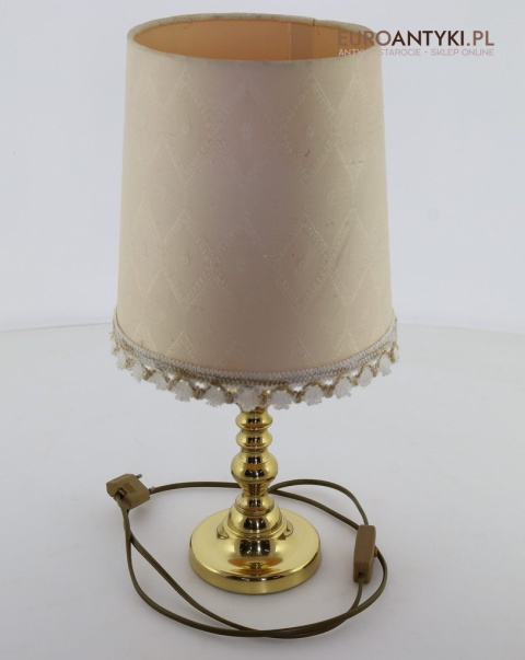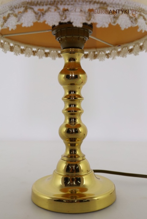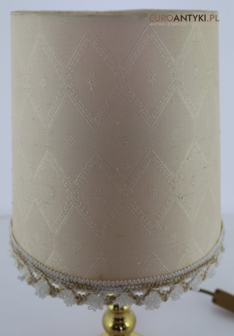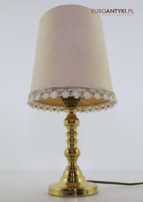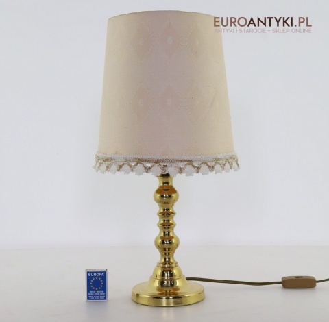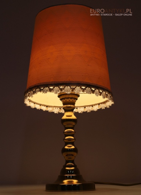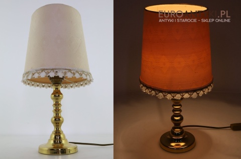 Ta stylowa lampka nocna z lat 70. to prawdziwa perełka z epoki. Solidna, wykonana z mosiądzu, o pięknie profilowanej podstawie i oryginalnym, ozdobnym abażurze, przywodzi na myśl klasyczny styl retro vintage. Abażur wykończony jest delikatną koronką, która nadaje mu wyjątkowy charakter i doskonale rozprasza światło, tworząc nastrojową atmosferę. Co istotne, lampka jest w doskonałym stanie technicznym – profesjonalnie wyczyszczona Abażur bez żadnych niepożądanych zapachów np. po dymie papierosowym.