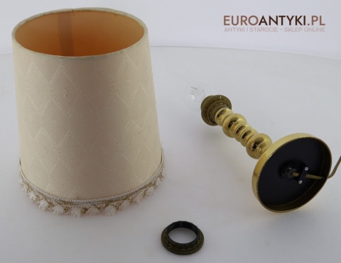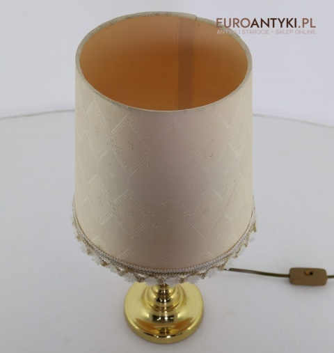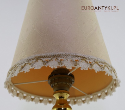Dziś takich lamp stołowych już się nie produkuje, co sprawia, że ten egzemplarz jest niepowtarzalny i dodaje unikalnego charakteru każdemu wnętrzu. Mosiądz oraz staranne wykonanie gwarantują trwałość i elegancję na lata, a delikatnie zdobiony abażur nadaje mu wyjątkowego stylu.