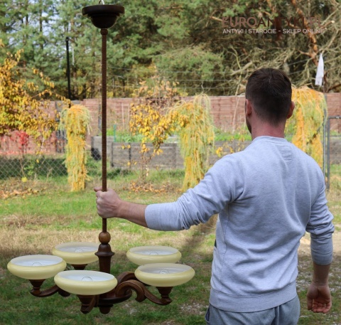 XL! WYSOKI! Żyrandol Art Deco z Epoki – Oryginalny Styl z Początku XX Wieku